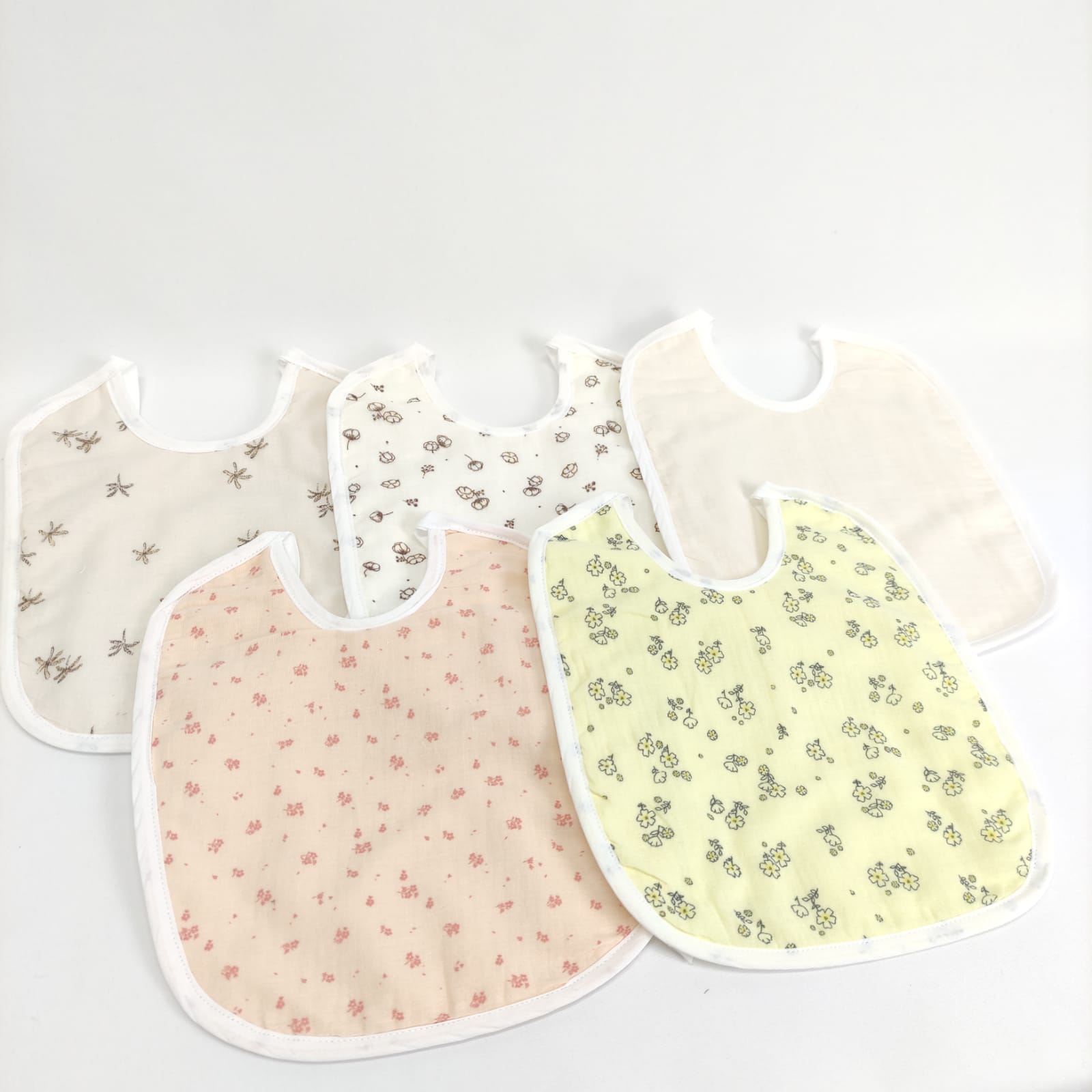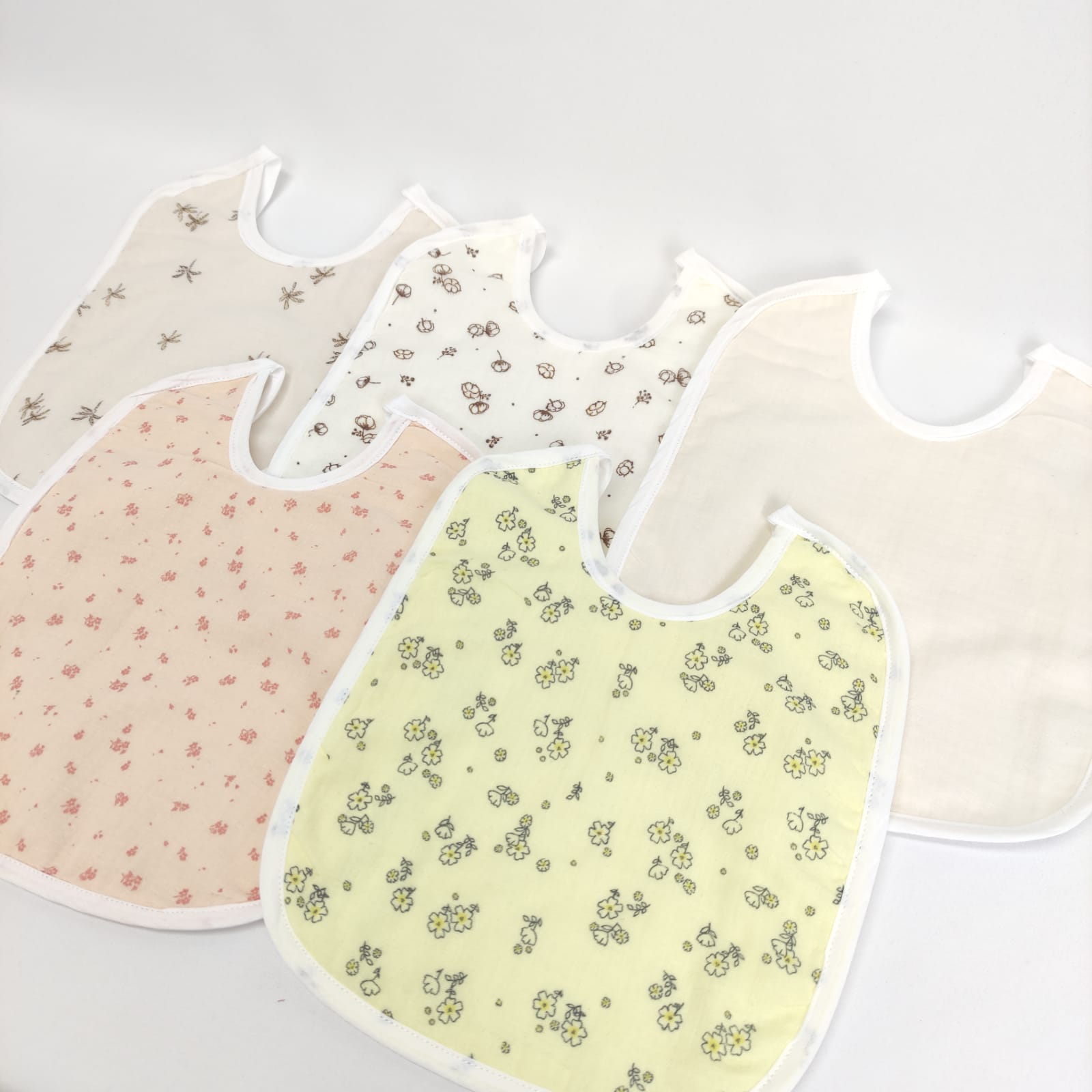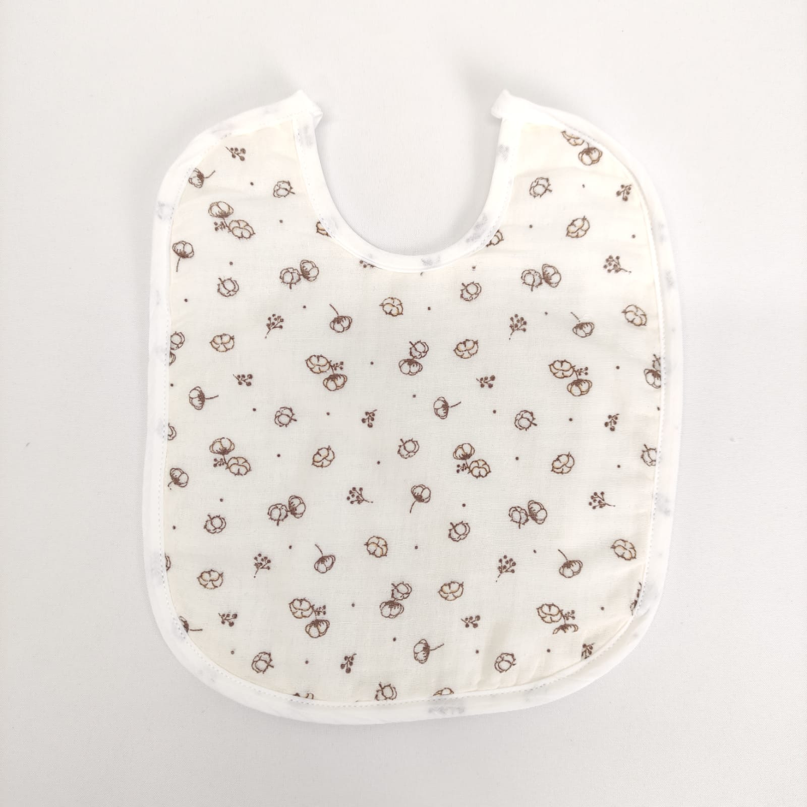 Babete quadrada em musselina com revestimento em plástico. Disponível com diferentes padrões