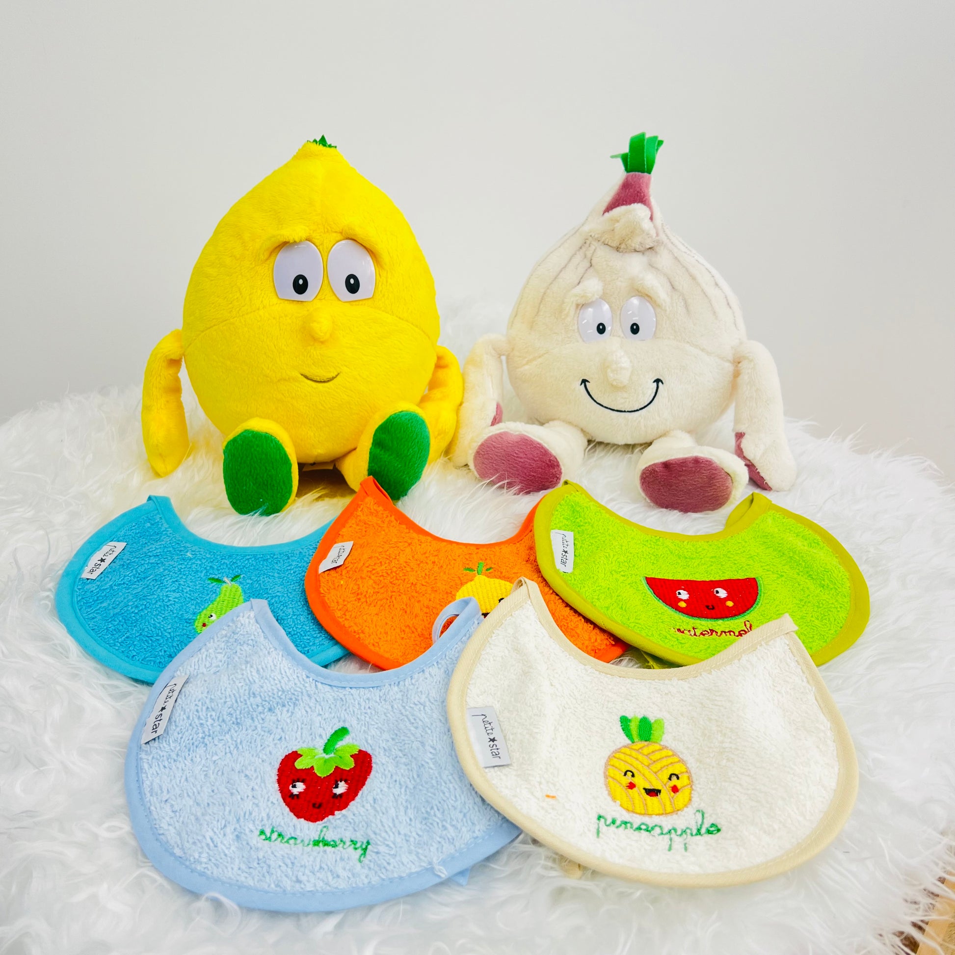 Perfeito para proteger a roupa do bebé nas refeições com um toque de ternura.