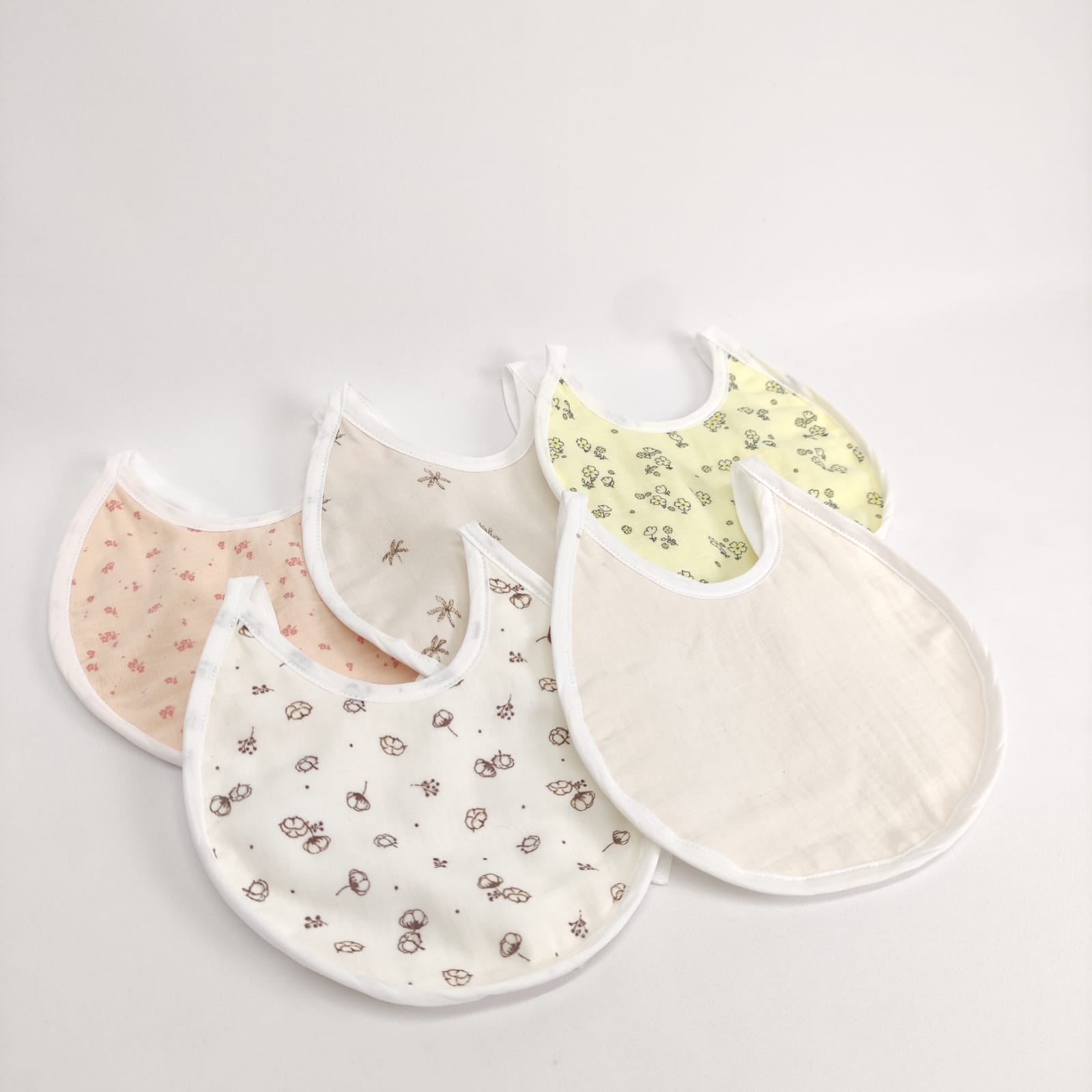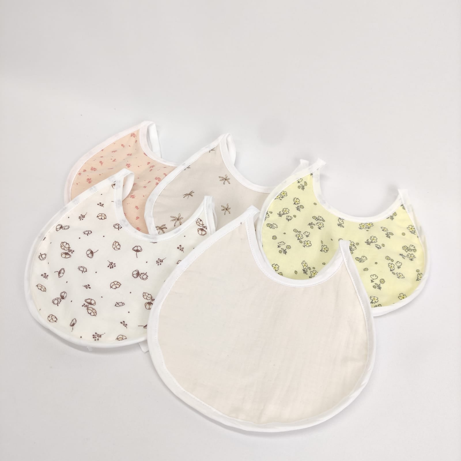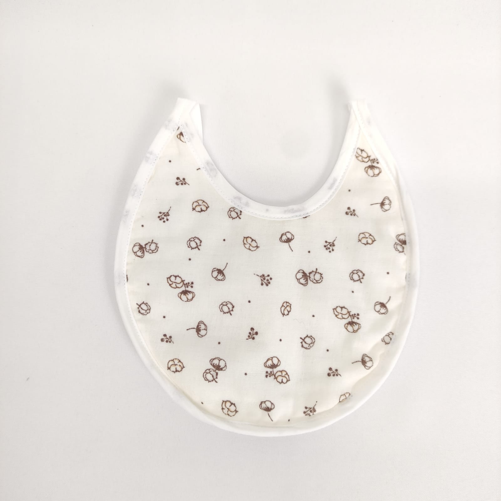 Babete redonda em musselina com revestimento em plástico. Disponível com diferentes padrões