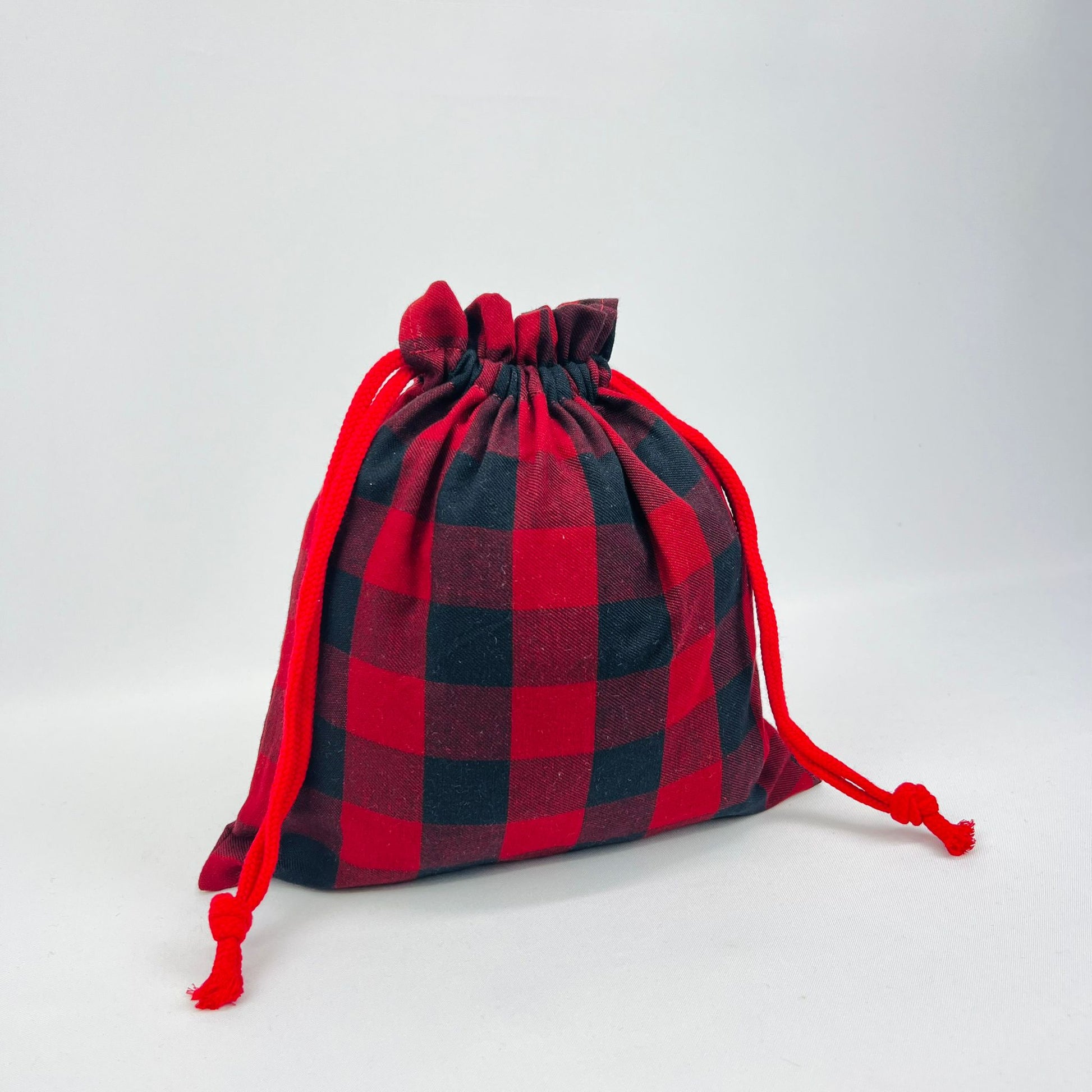 Bolsa de Merenda em algodão, 25x30cm aprox., estampado xadrez.