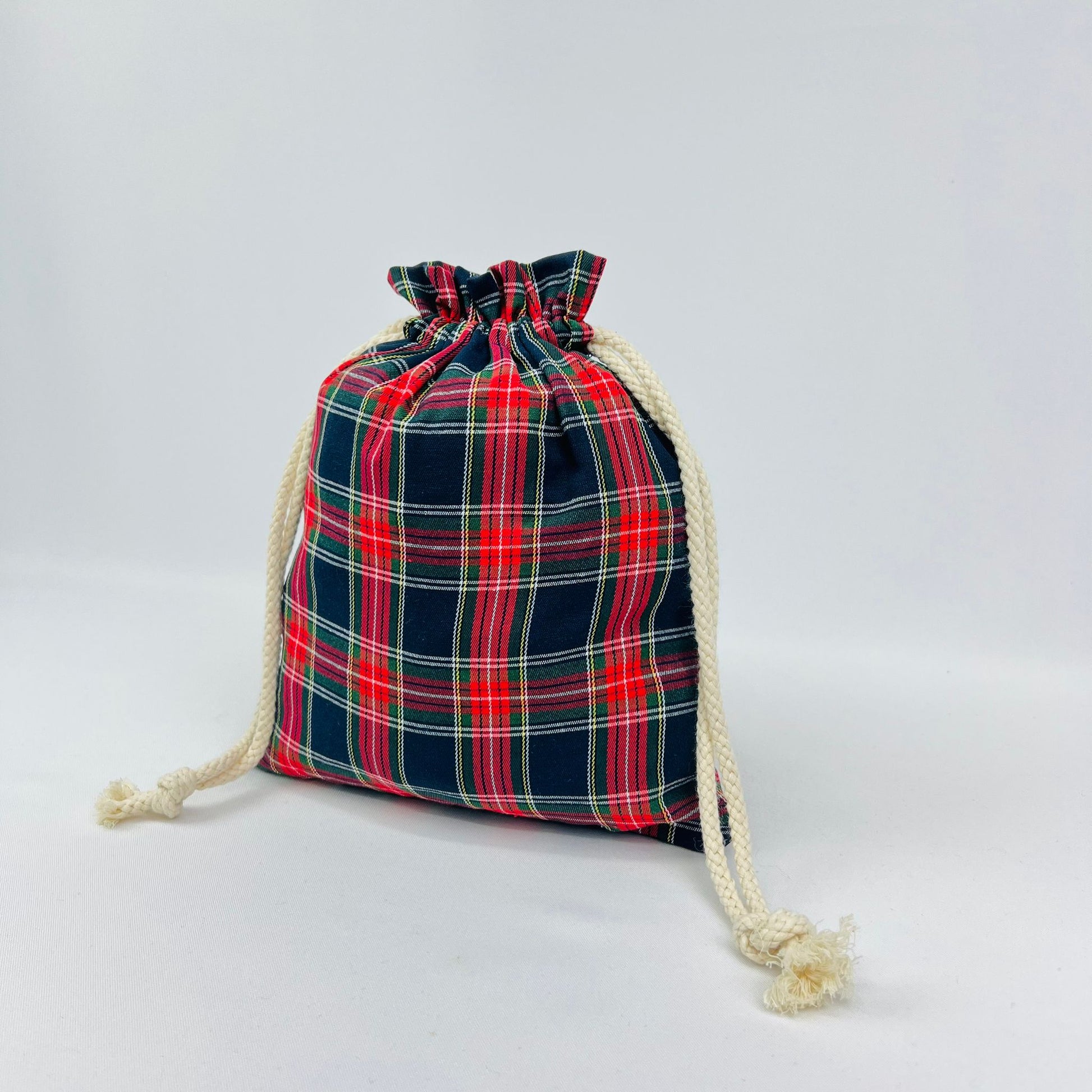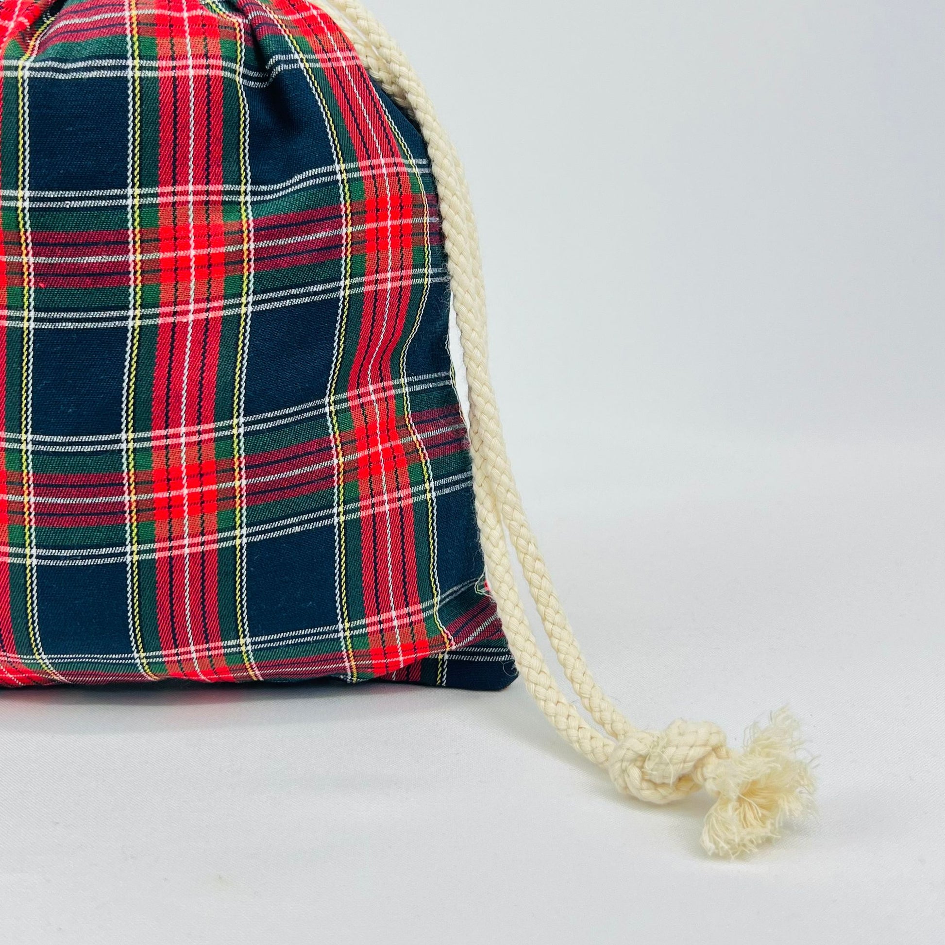 Bolsa de Merenda em linho e algodão, 25x30cm aprox., estampado xadrez.