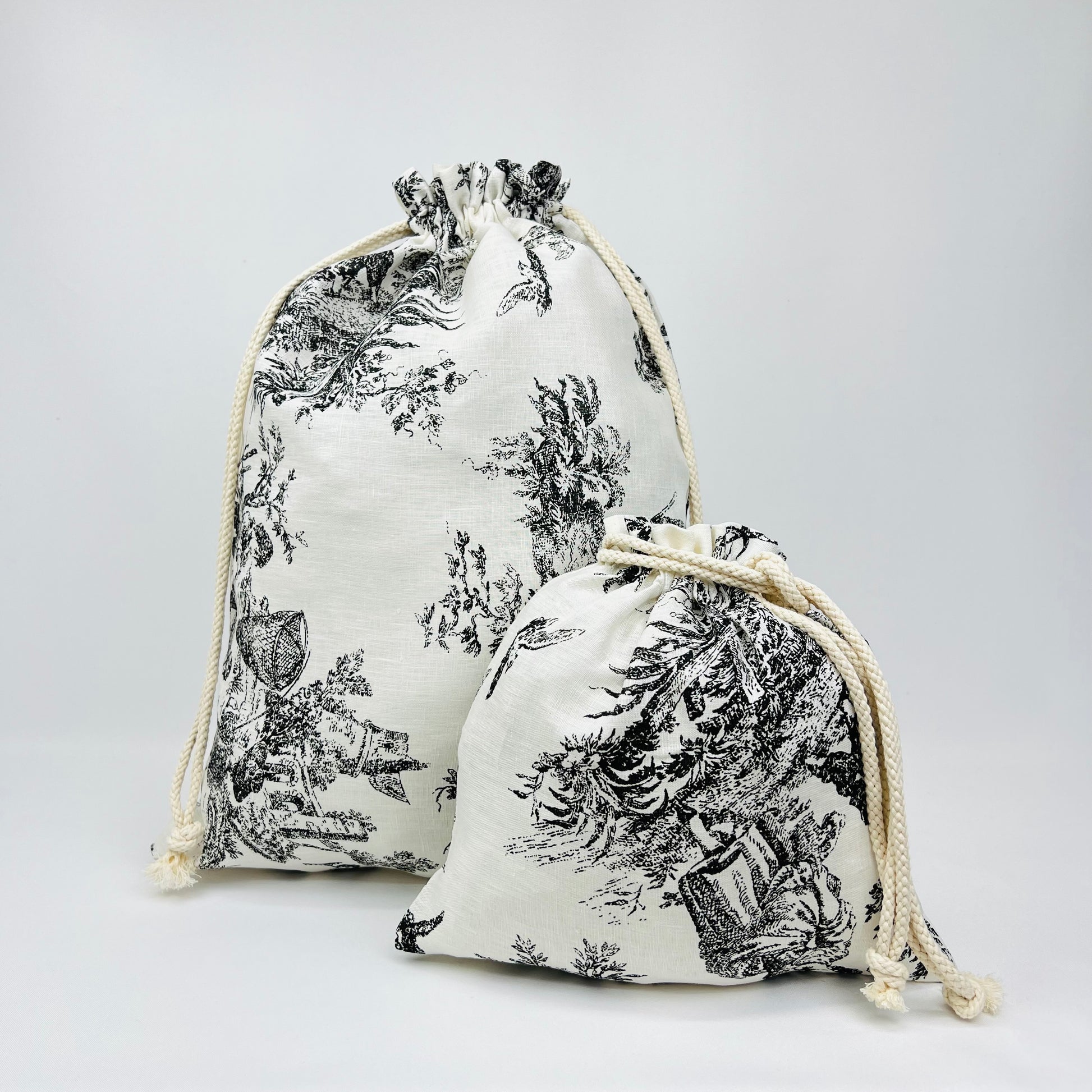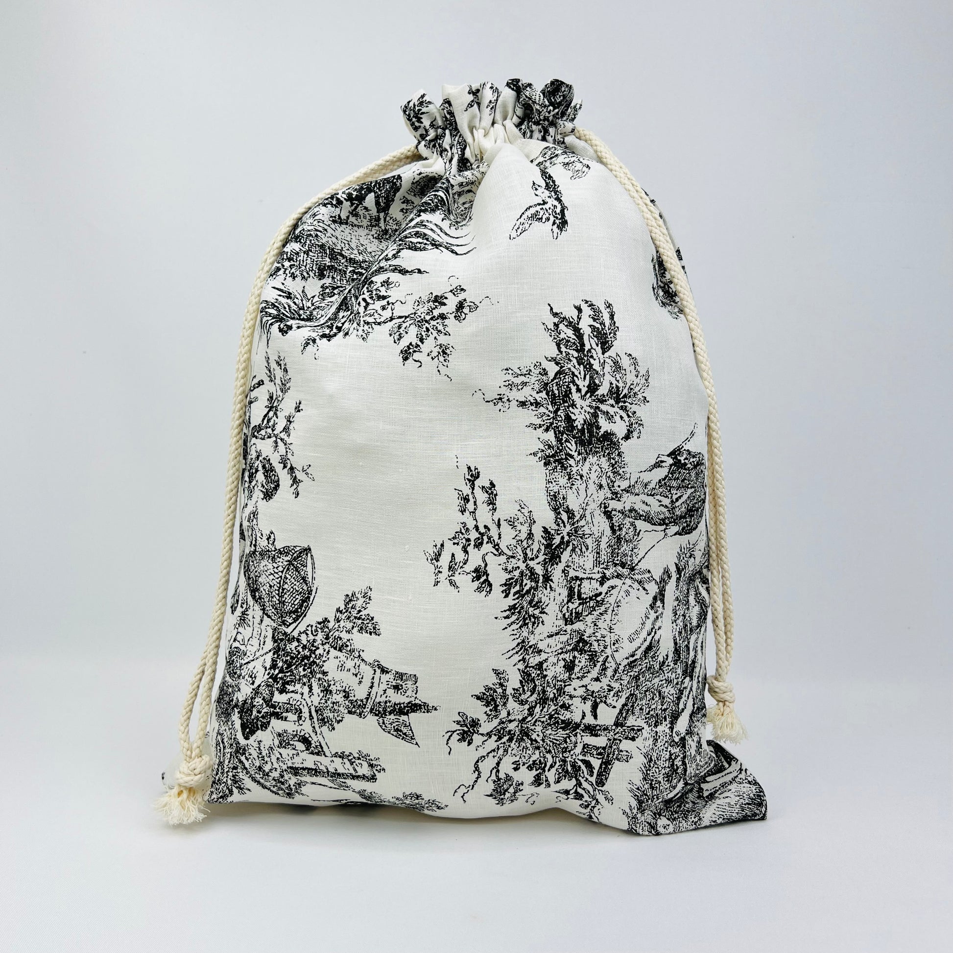 Bolsa de Pão ou Merenda em linho estampado toile de jouy preto, disponível em duas medidas.