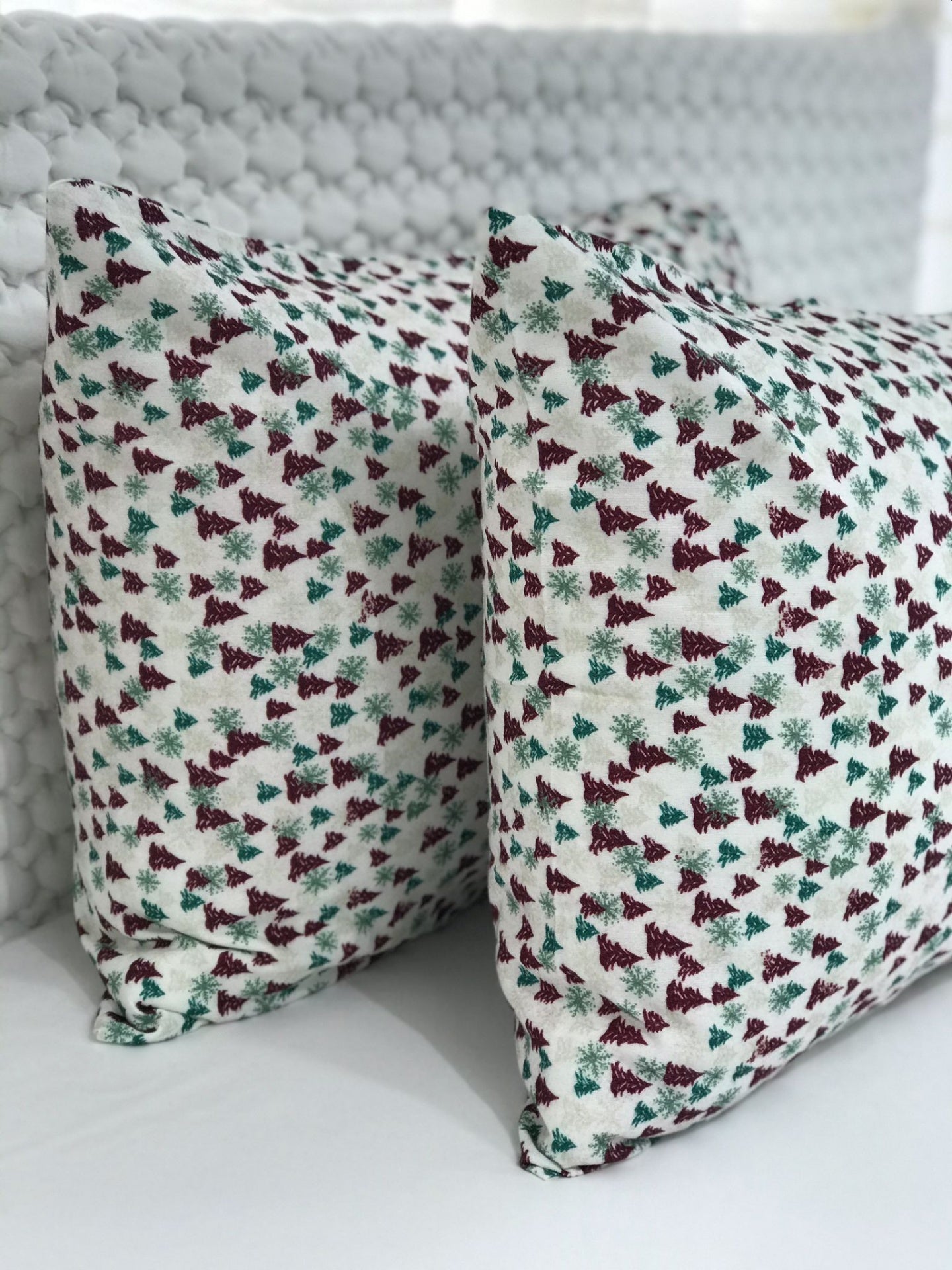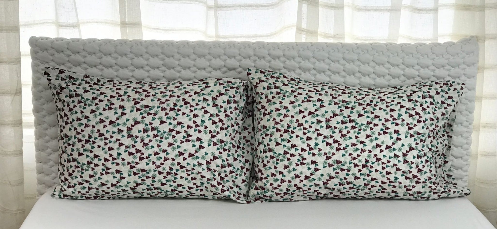 Fronha de almofada em flanela de algodão estampado.