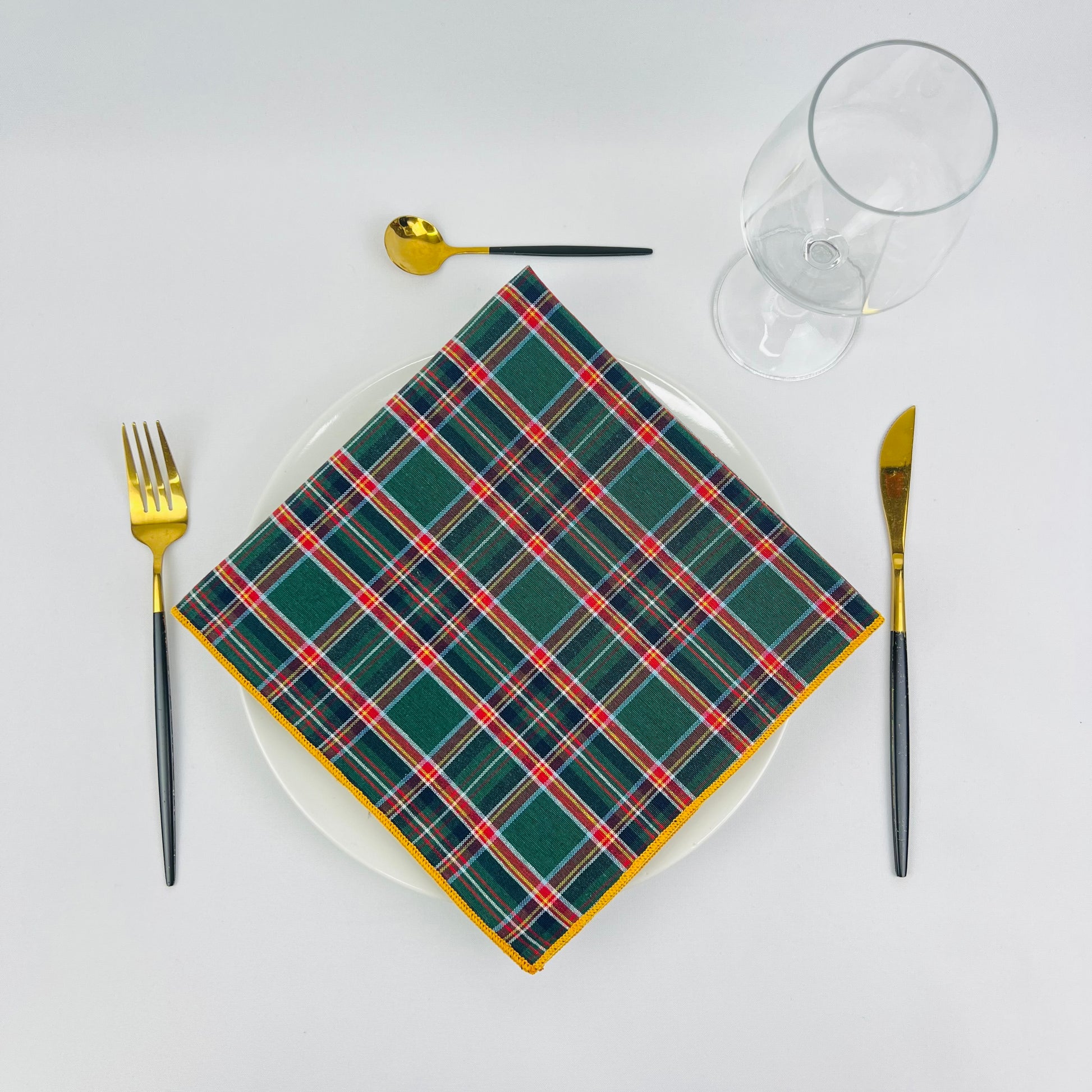 Guardanapo em tons natalícios com acabamento em rolinho overlock disponível em várias cores.