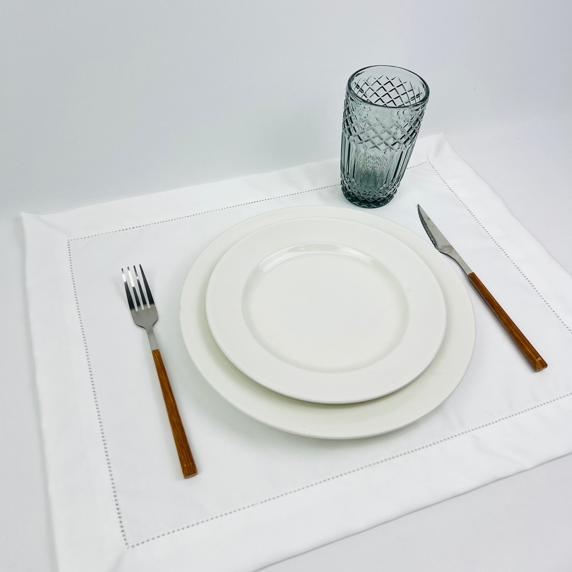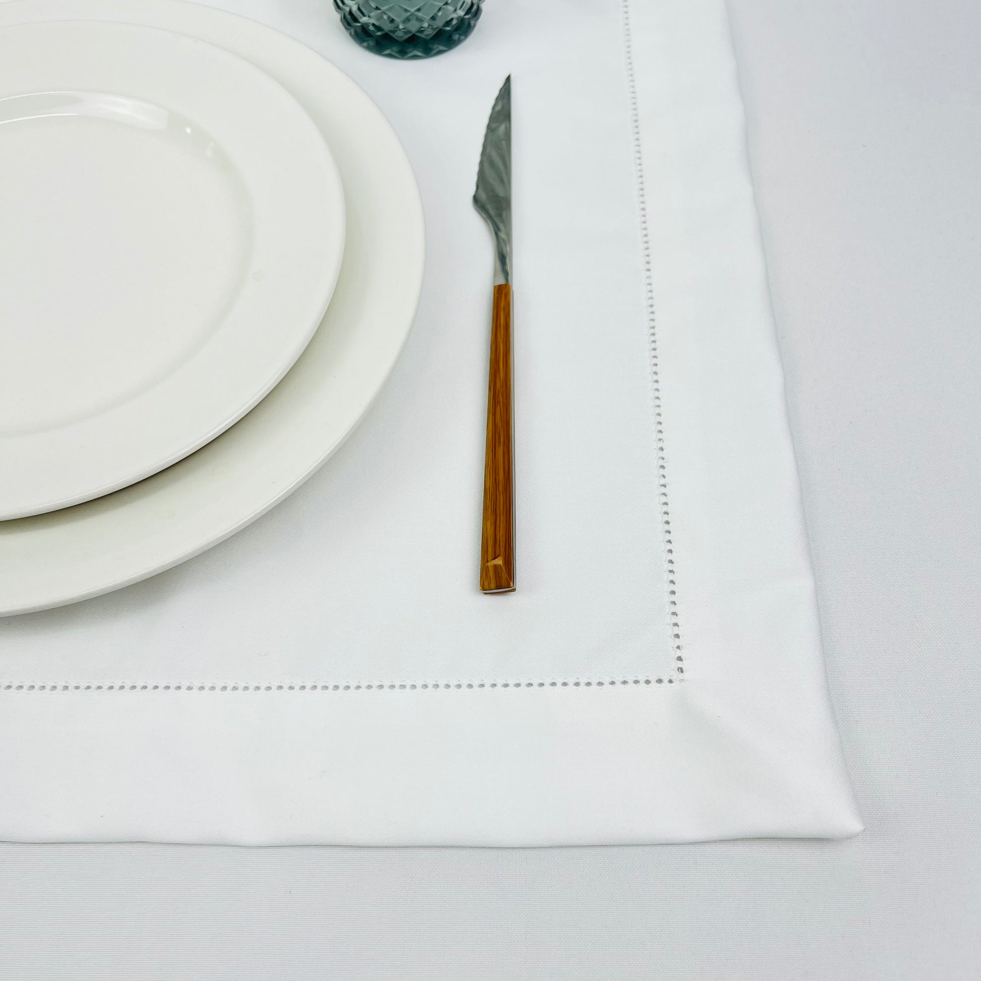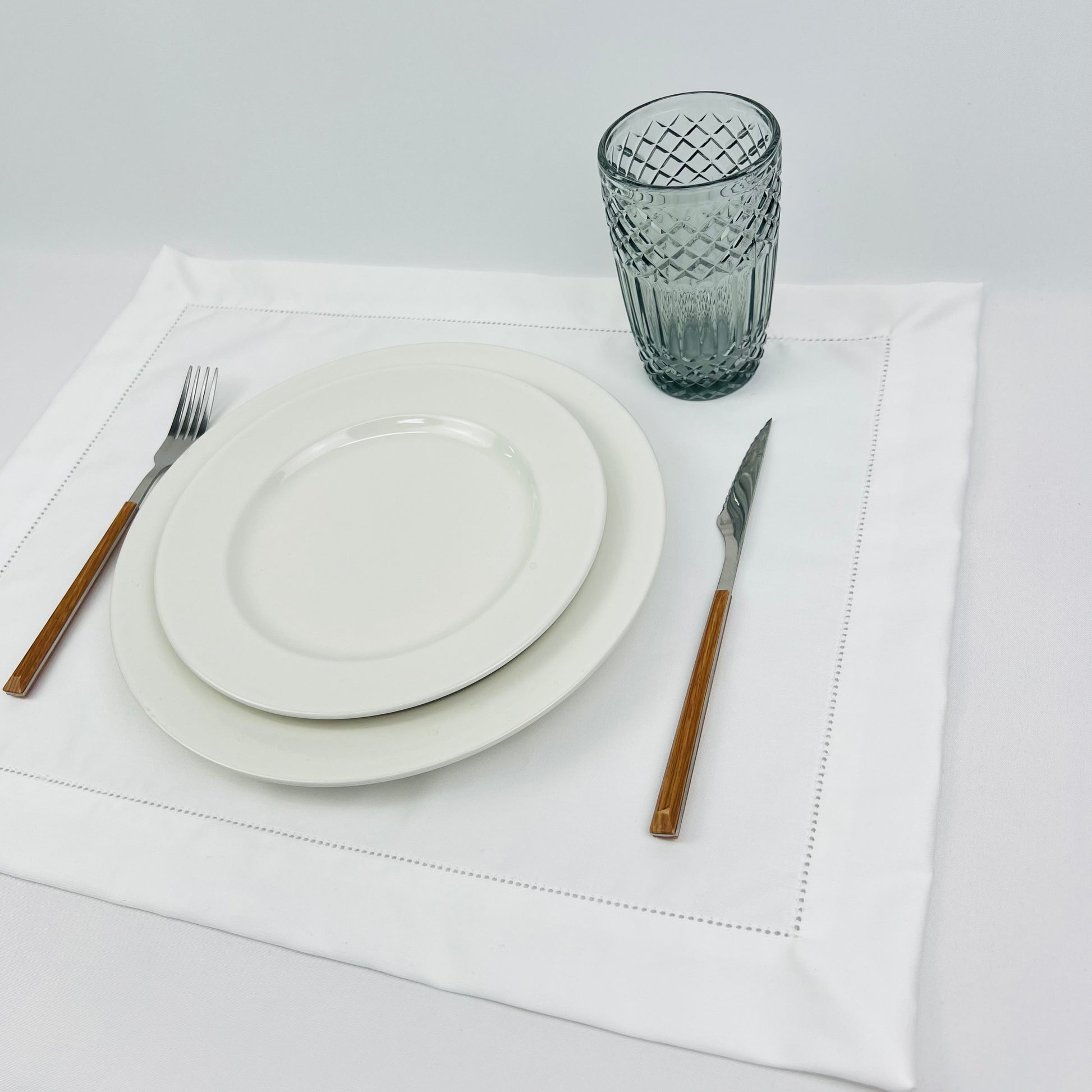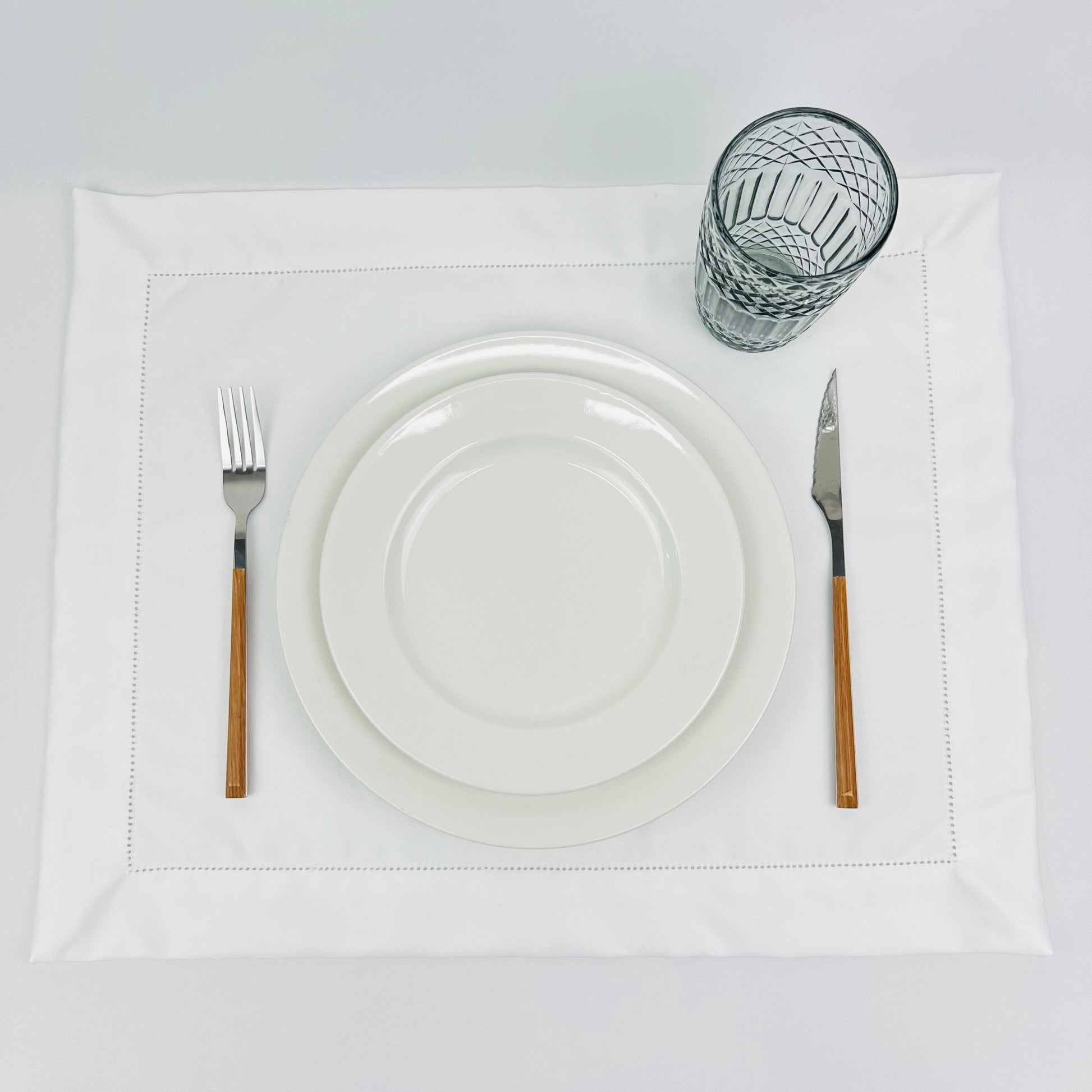Individual de mesa em algodão branco, com acabamento em ponto-aberto