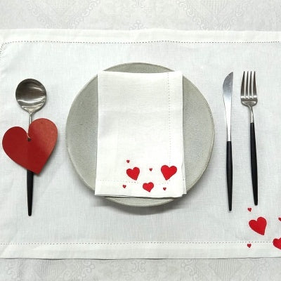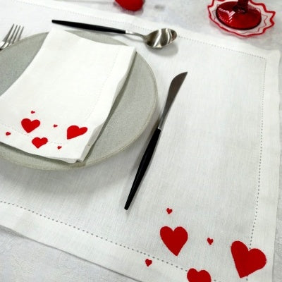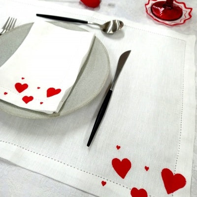 Individual em linho branco, 35x50cm aprox., c/ bordado e acabamento em ponto aberto.