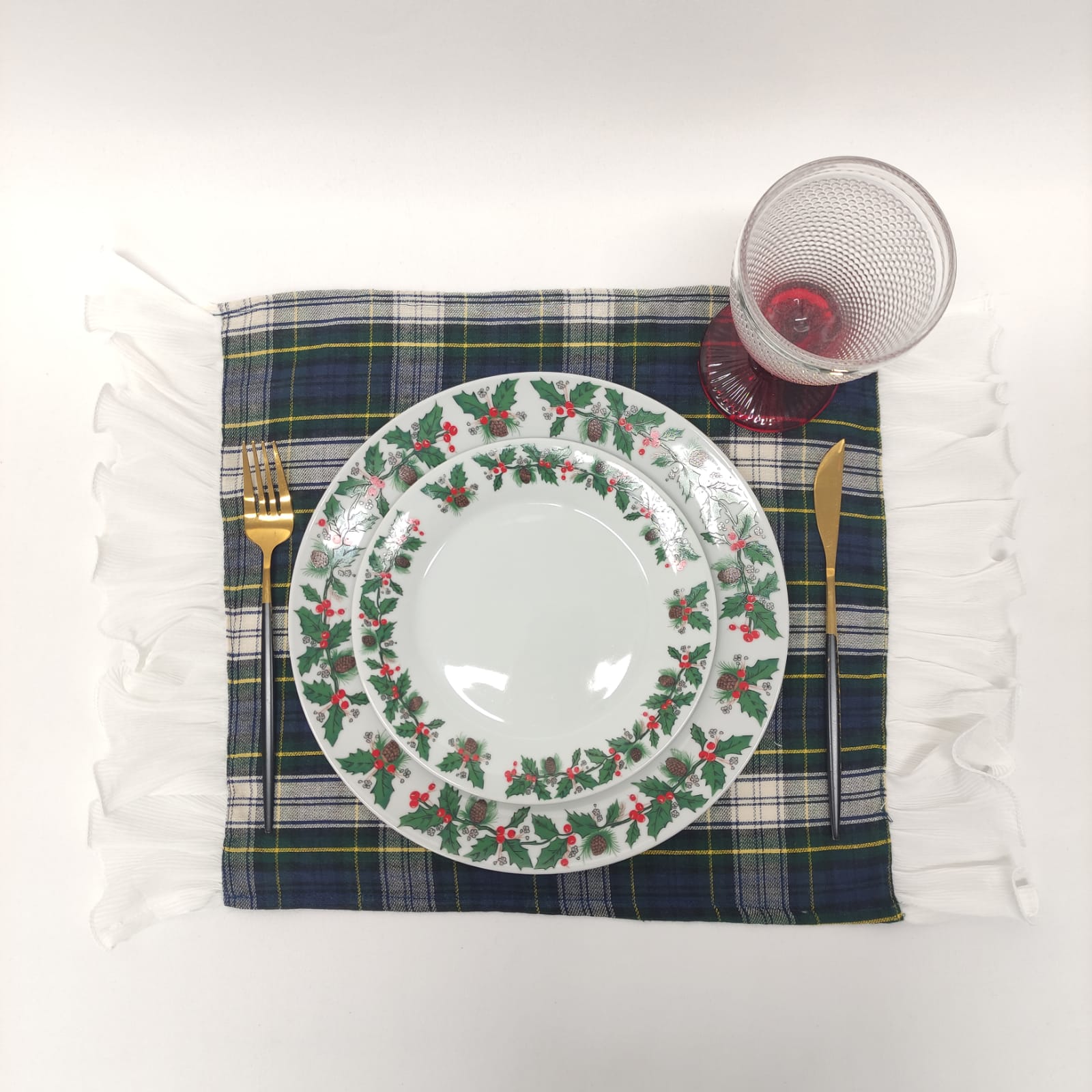 Individual de Mesa com padrão clássico e elegante pormenor de folho.