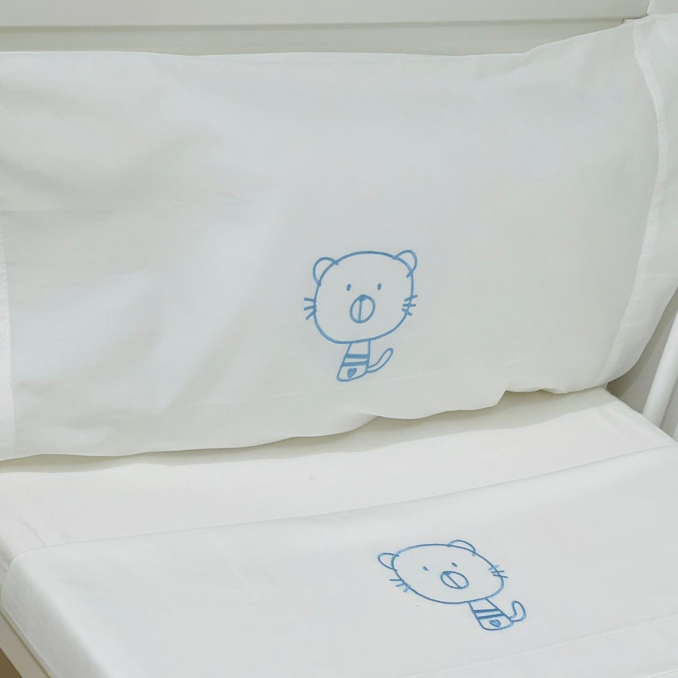 Jogo de lençóis em algodão branco c/ bordado, disponível em várias cores e medidas.