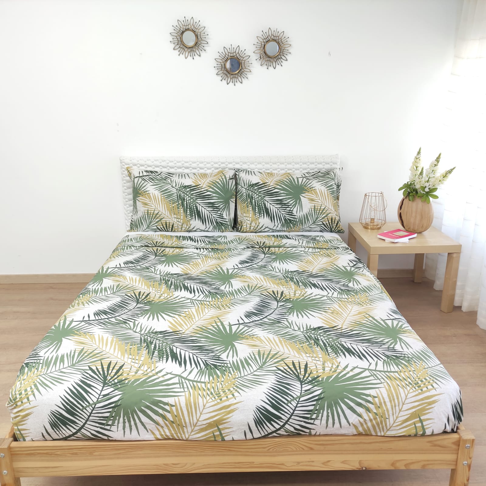 Lençol de baixo ajustável em algodão estampado, disponível em várias medidas.
