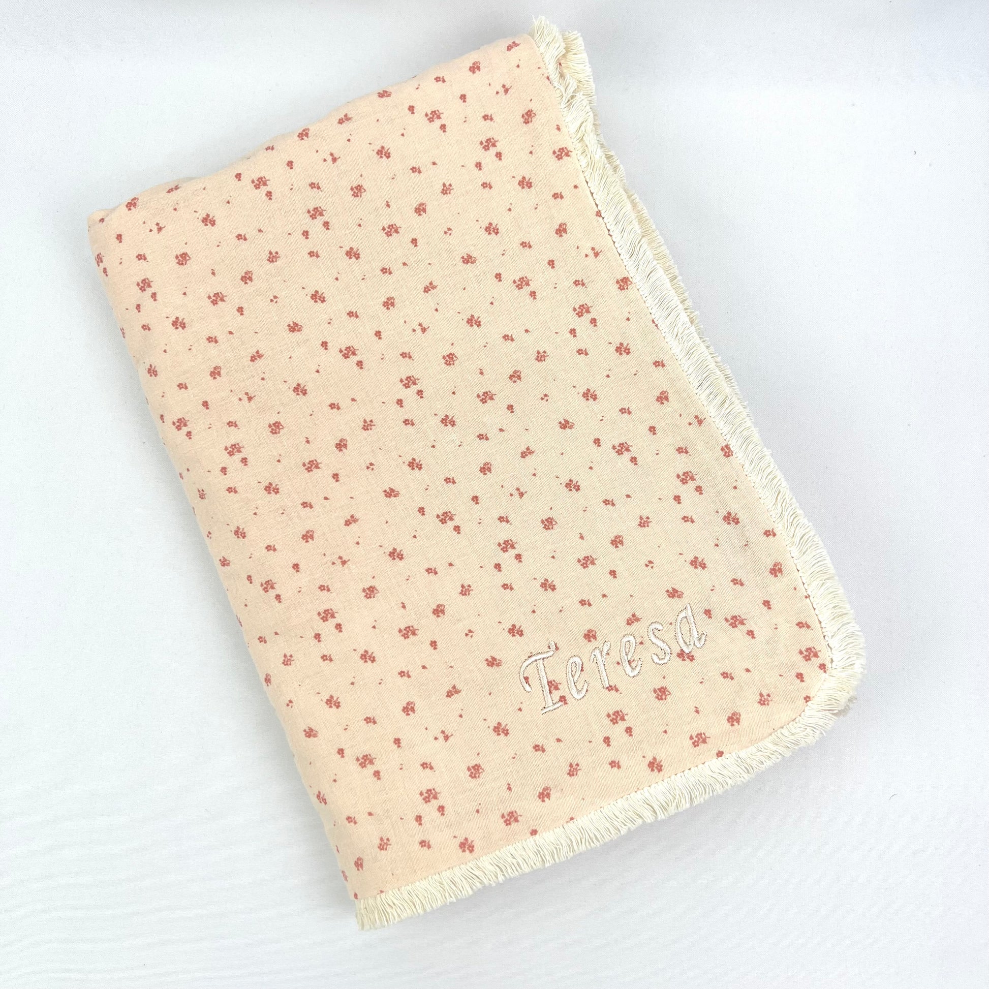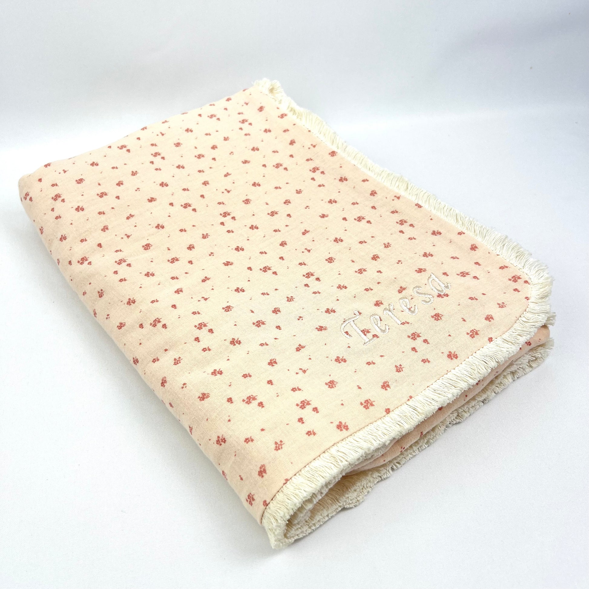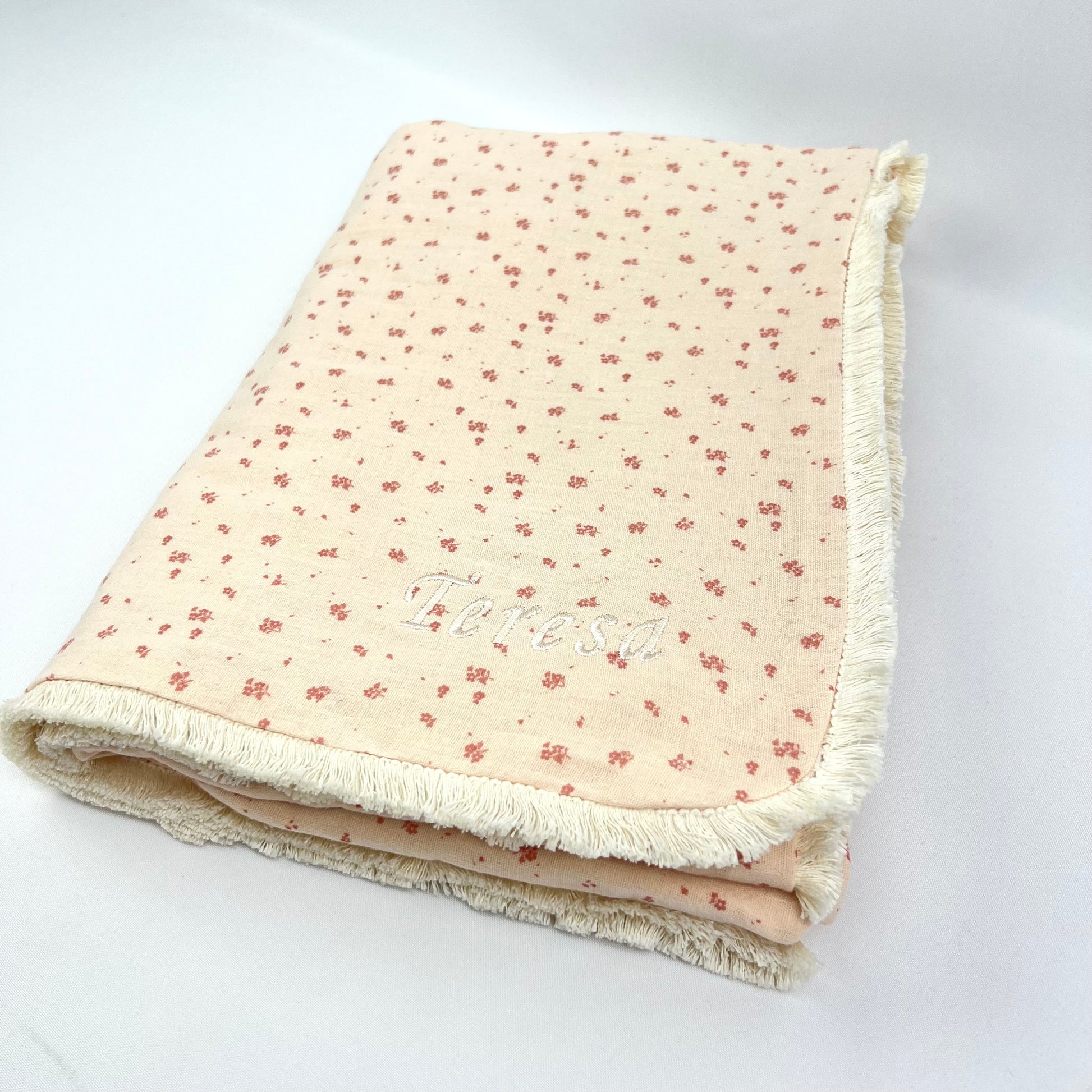 Manta personalizável em musselina de algodão, c/ padrão de pequenas flores.