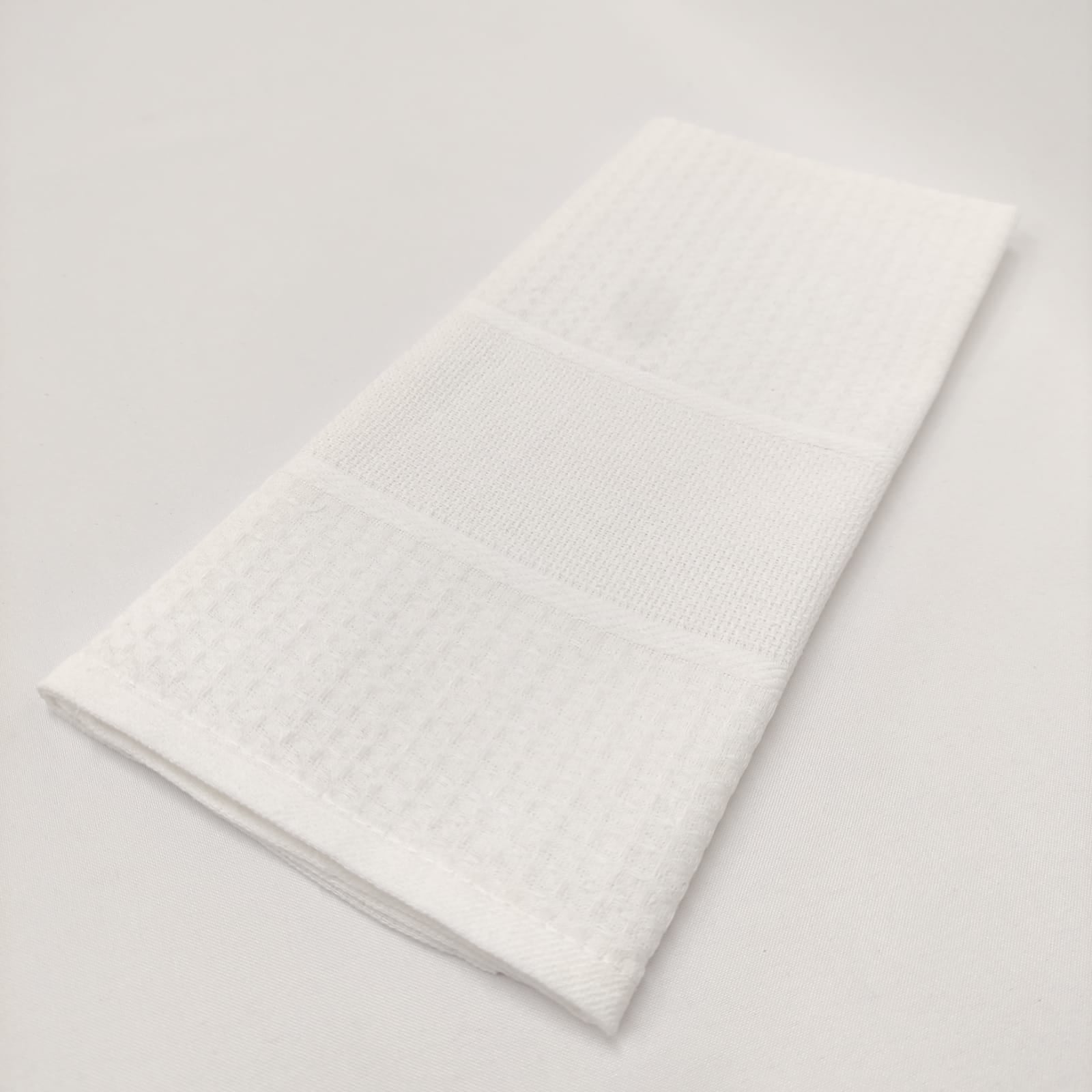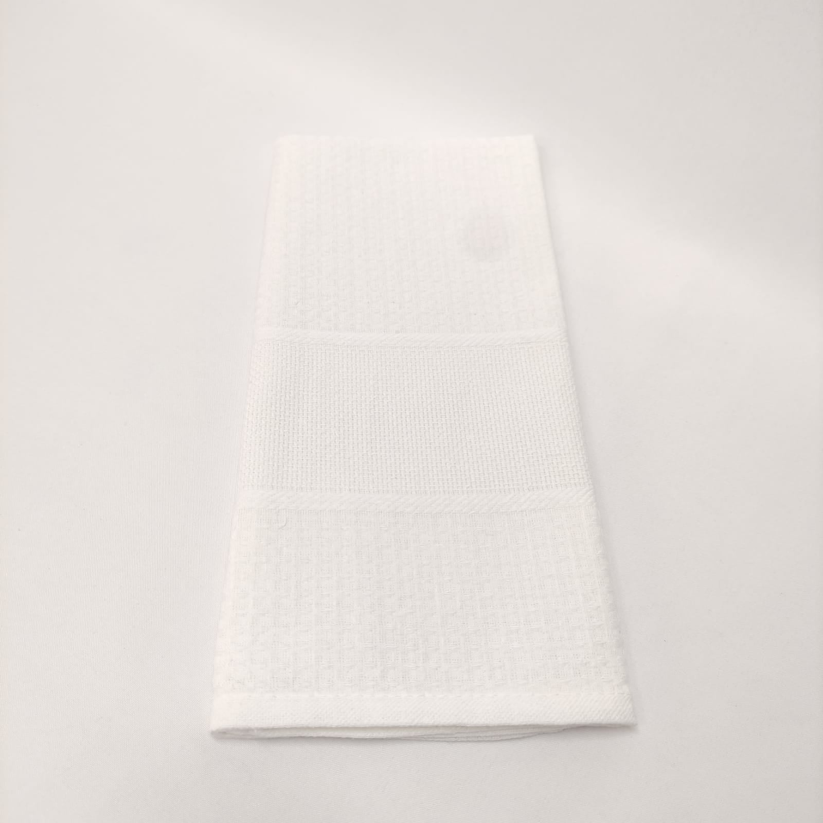 Pano de cozinha em favo de algodão branco, 50x70 cm aprox., com duas barras ideal para bordar.