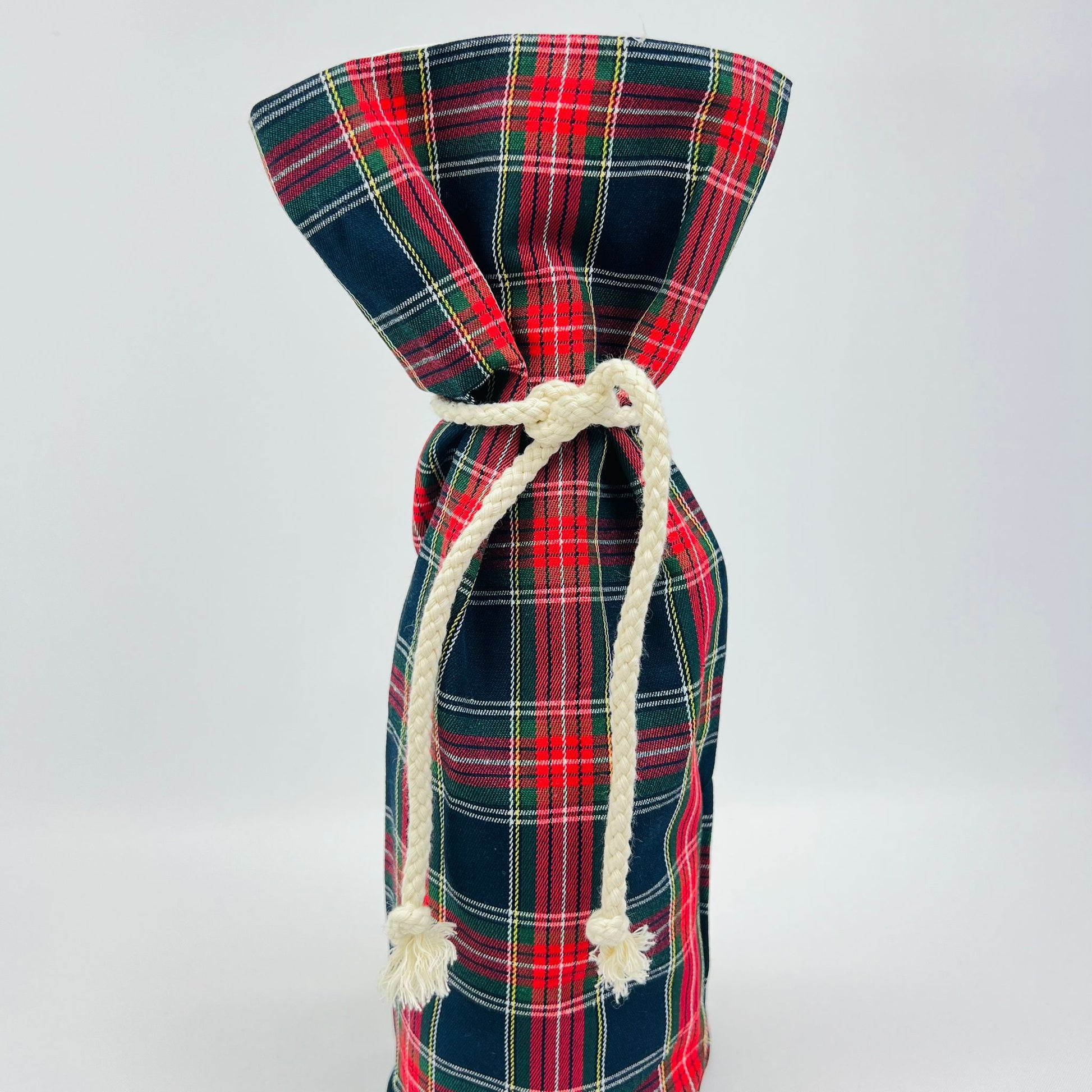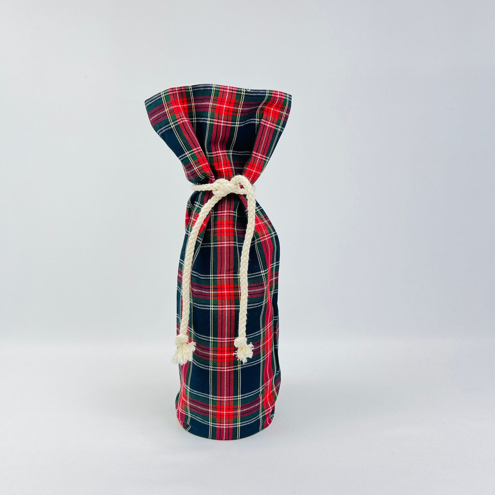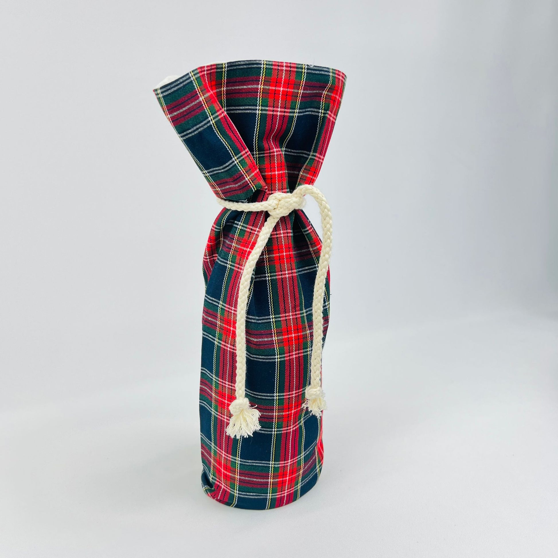 Porta Garrafas c/ estampado xadrez, em algodão/poliéster.