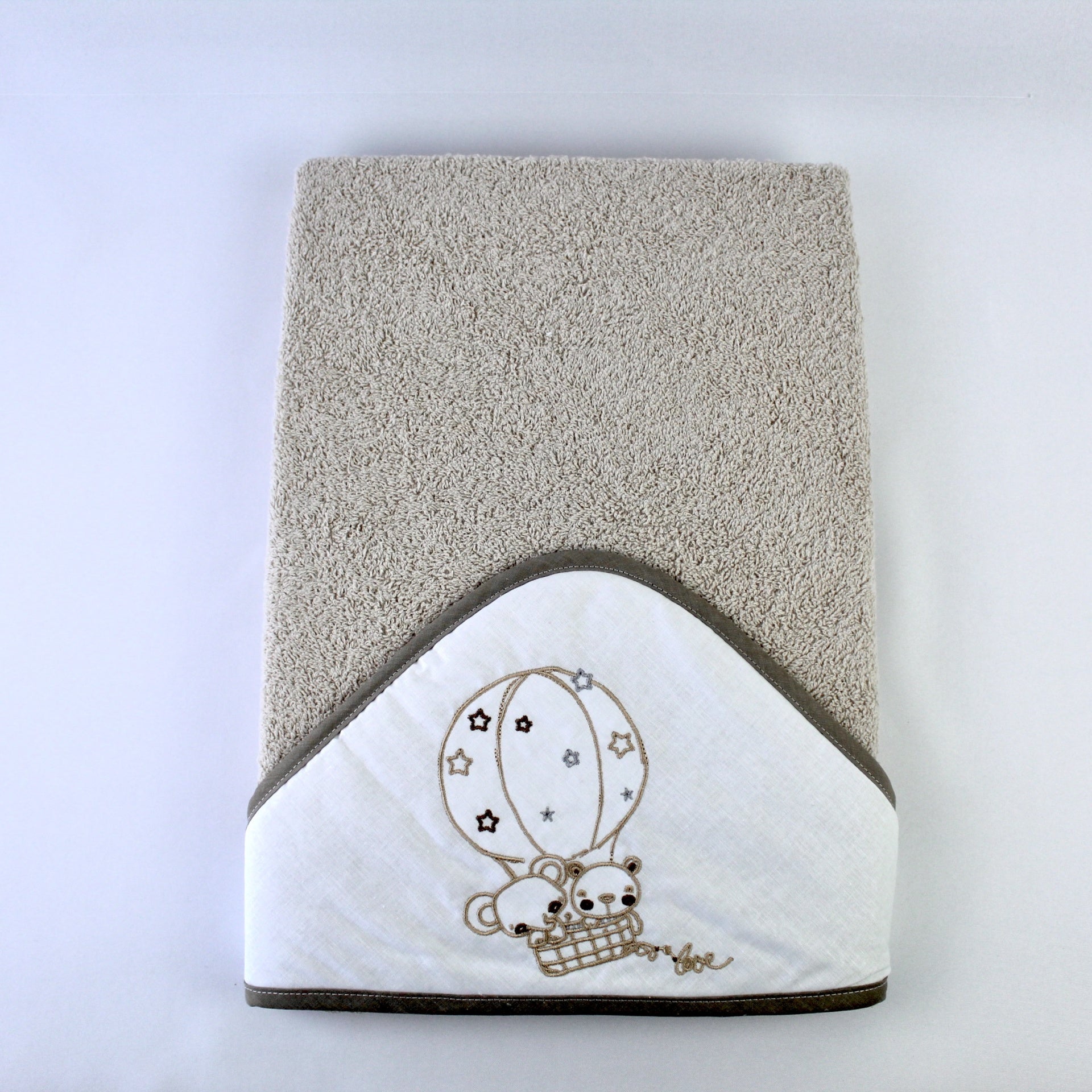 Toalha em felpo de algodão colorido c/ detalhe de bordado no capuz, disponível em várias cores e medidas