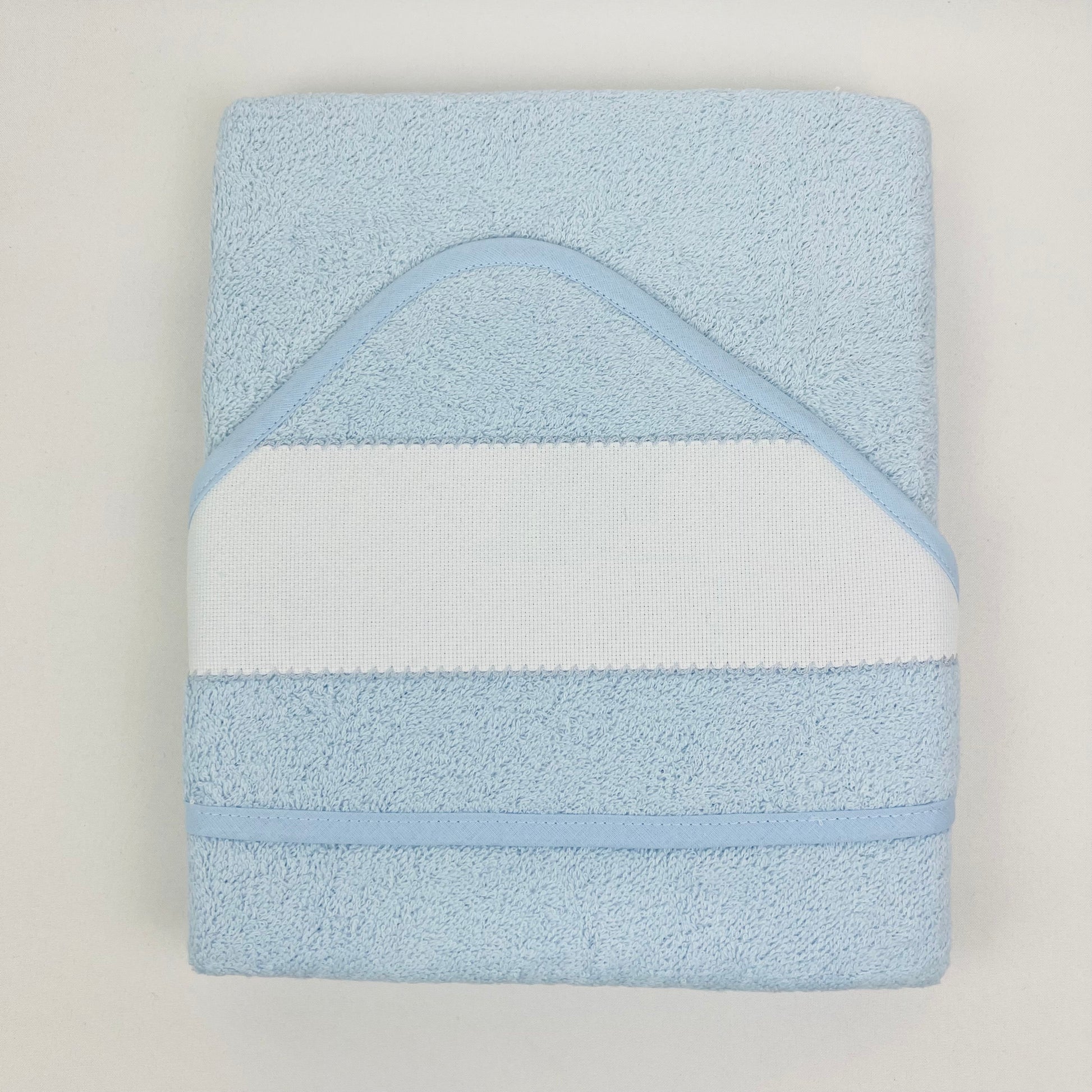 Toalha de banho personalizável para bebé em felpo de algodão colorido, c/ barra para bordar, disponível em várias cores.