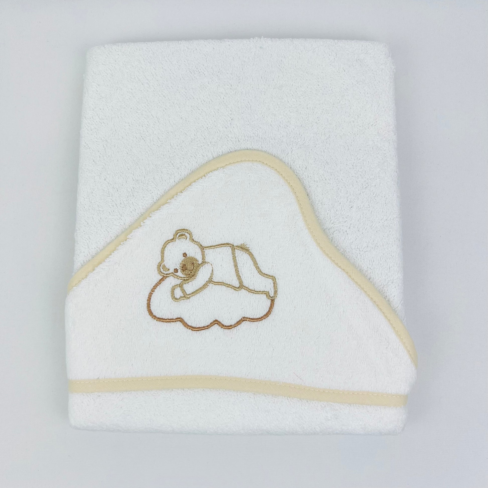 Toalha em felpo de algodão branco c/ detalhe de bordado no capuz, disponível em várias cores e medidas