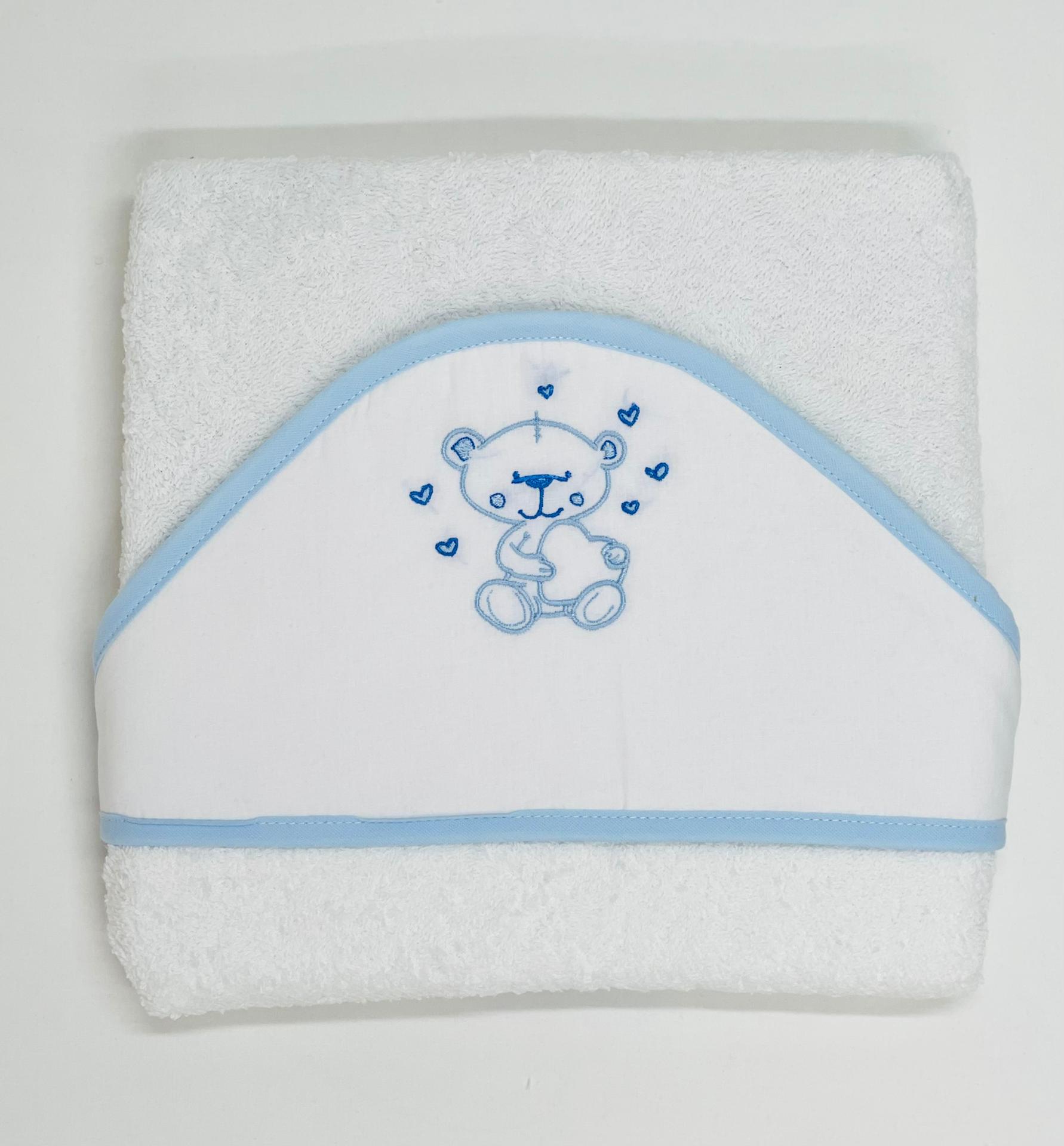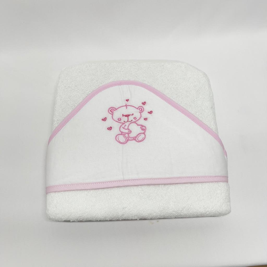 Toalha em felpo de algodão branco c/ detalhe de bordado no capuz, disponível em várias cores