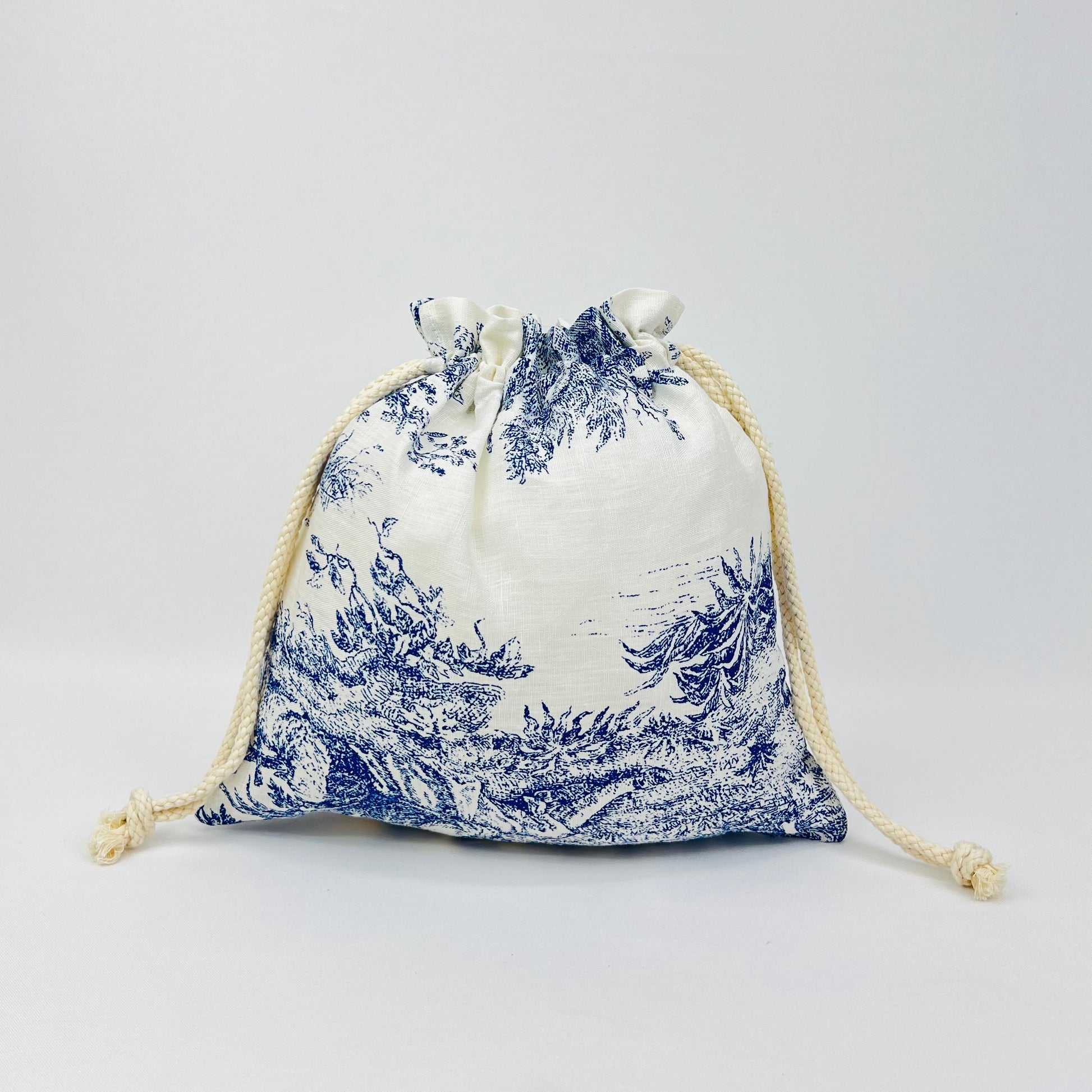 Bolsa de Pão ou Merenda em linho estampado toile de jouy azul, disponível em duas medidas.