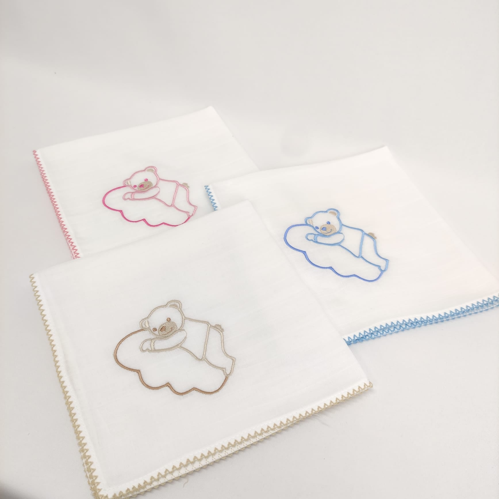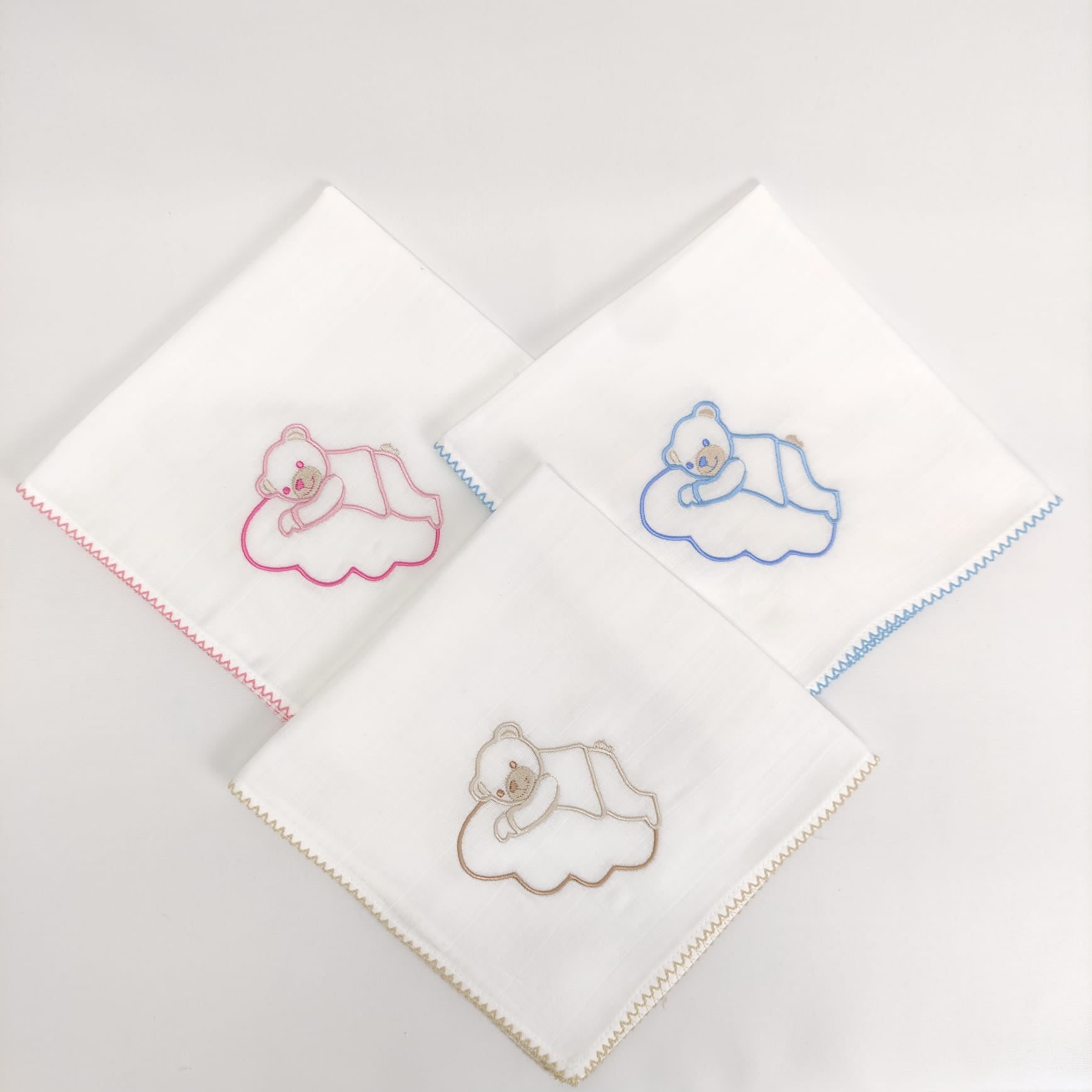 Fralda em algodão, com acabamento em beijinho e bordado infantil, disponível em várias medidas.