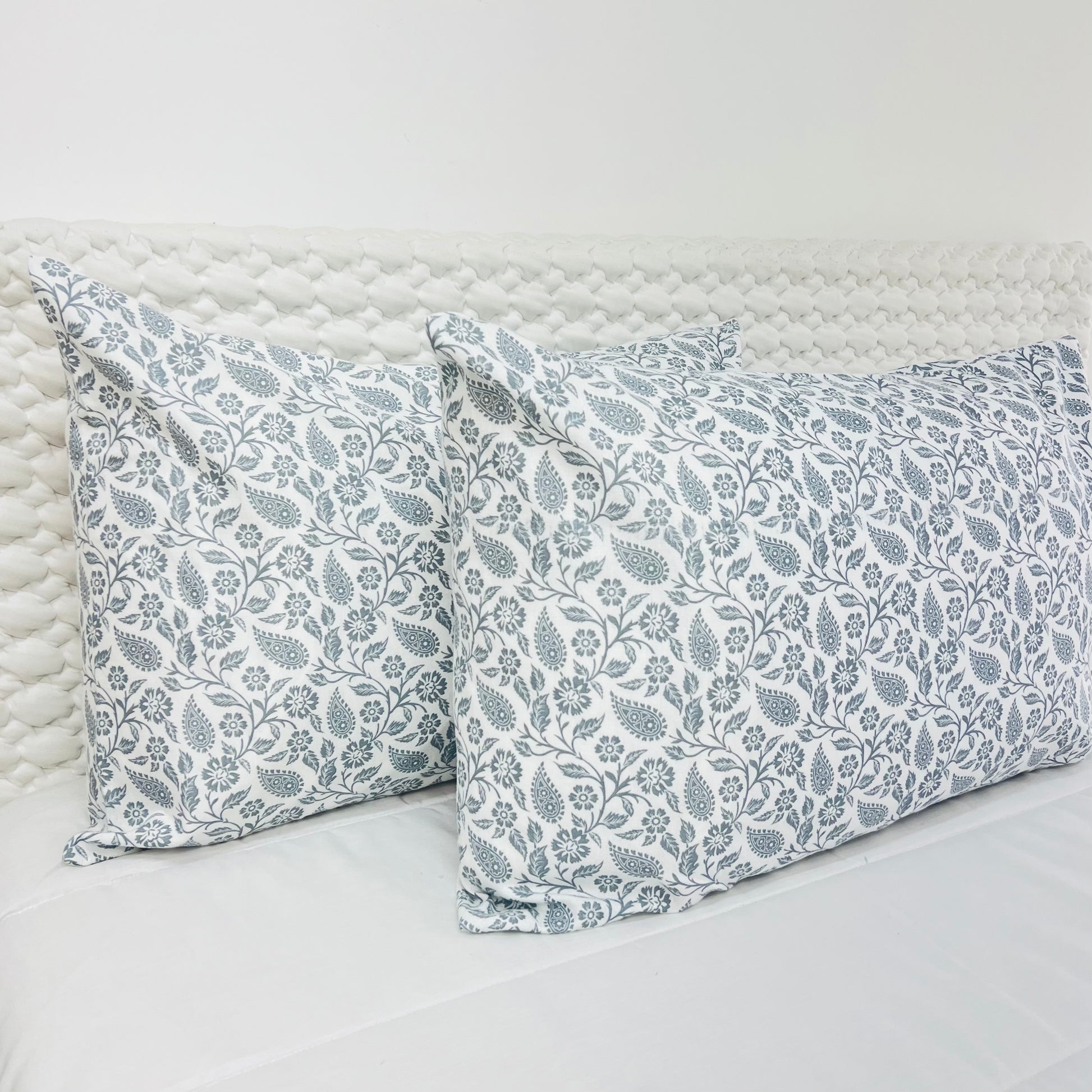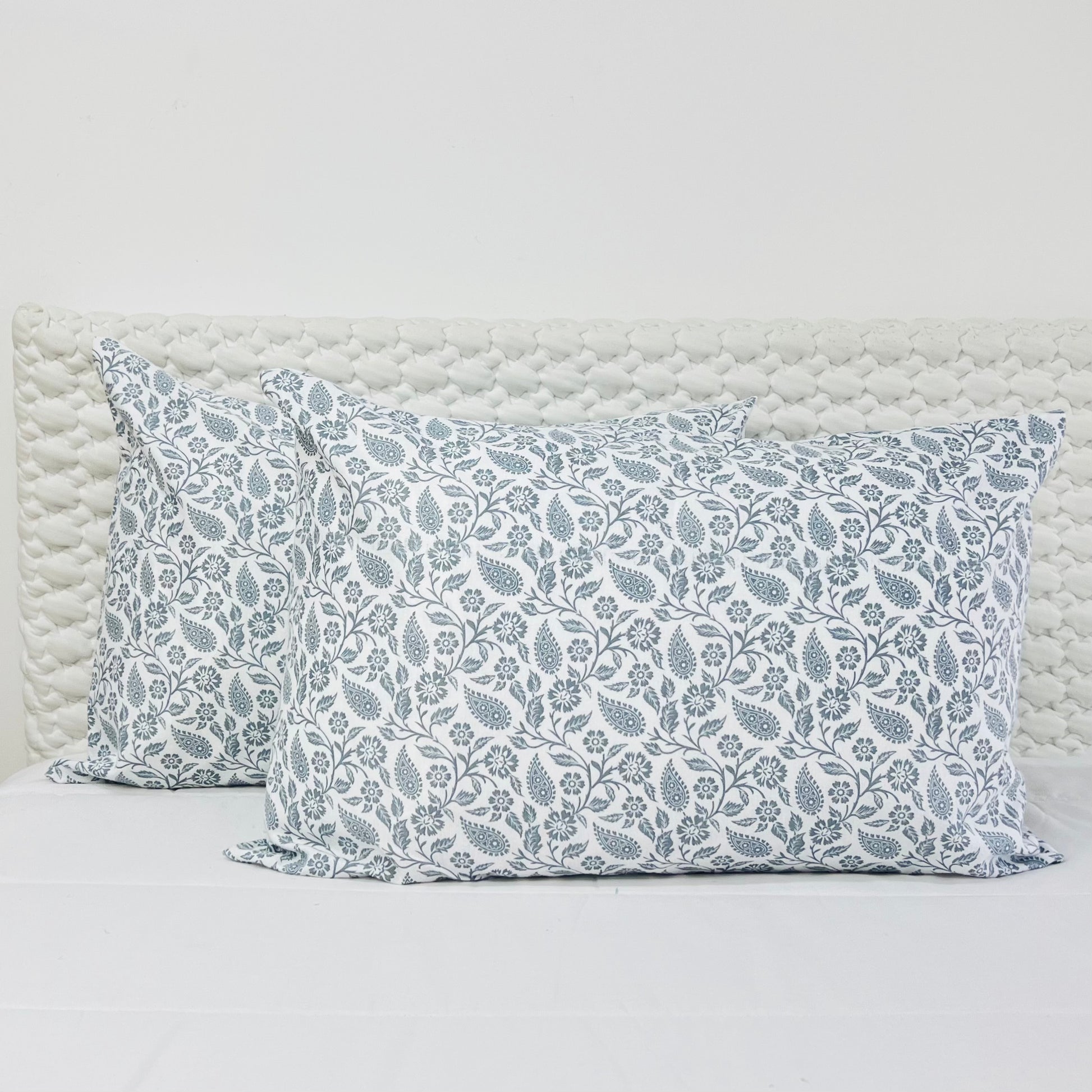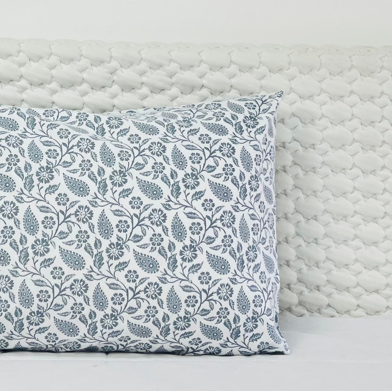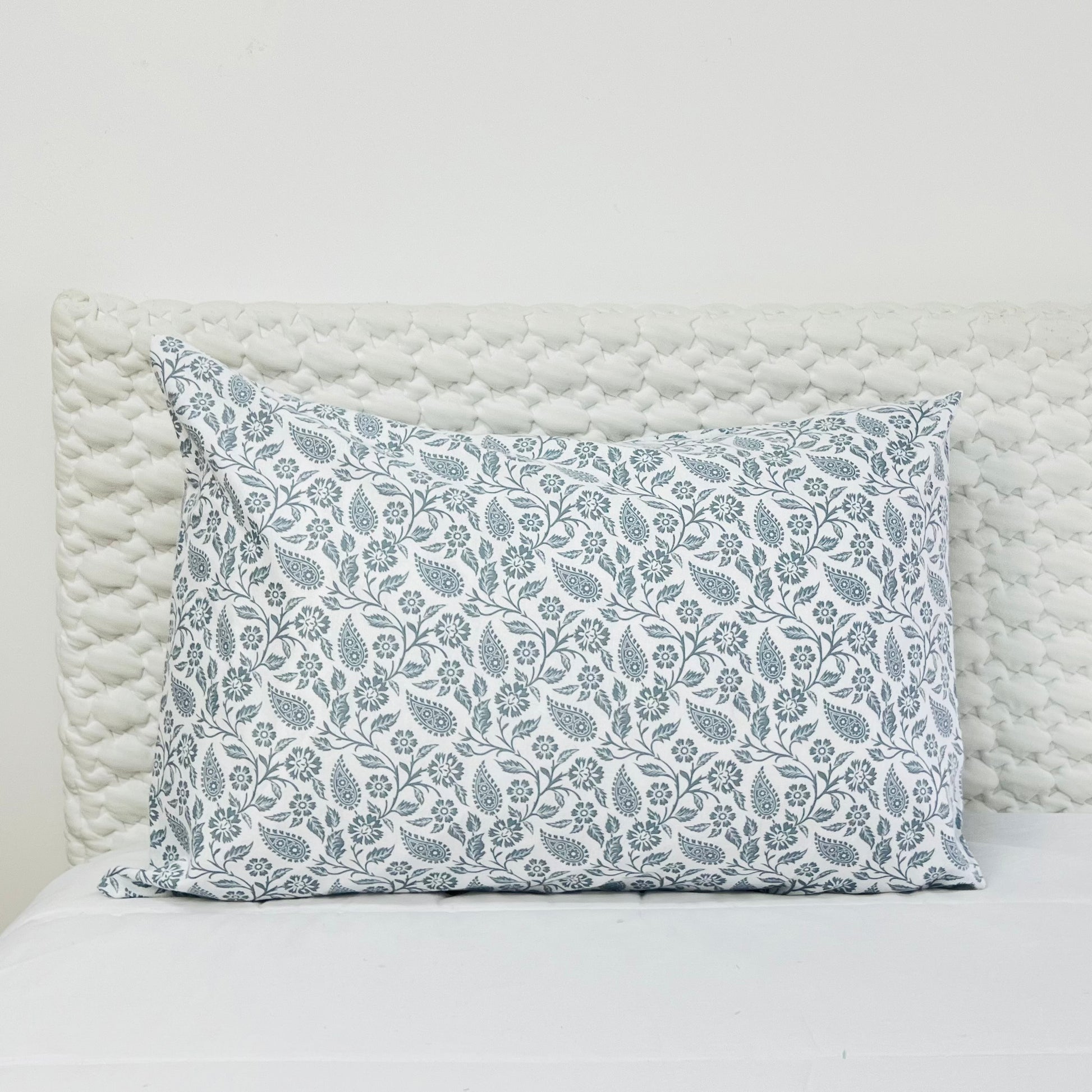 Fronha de almofada em flanela, c/ padrão em tons de azul. Disponível em várias medidas.
