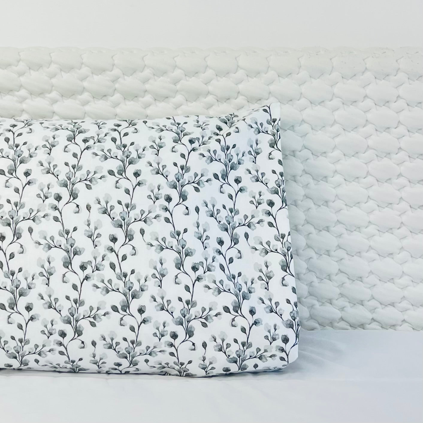 Fronha de almofada em flanela, c/ padrão em tons cinza. Disponível em várias medidas.