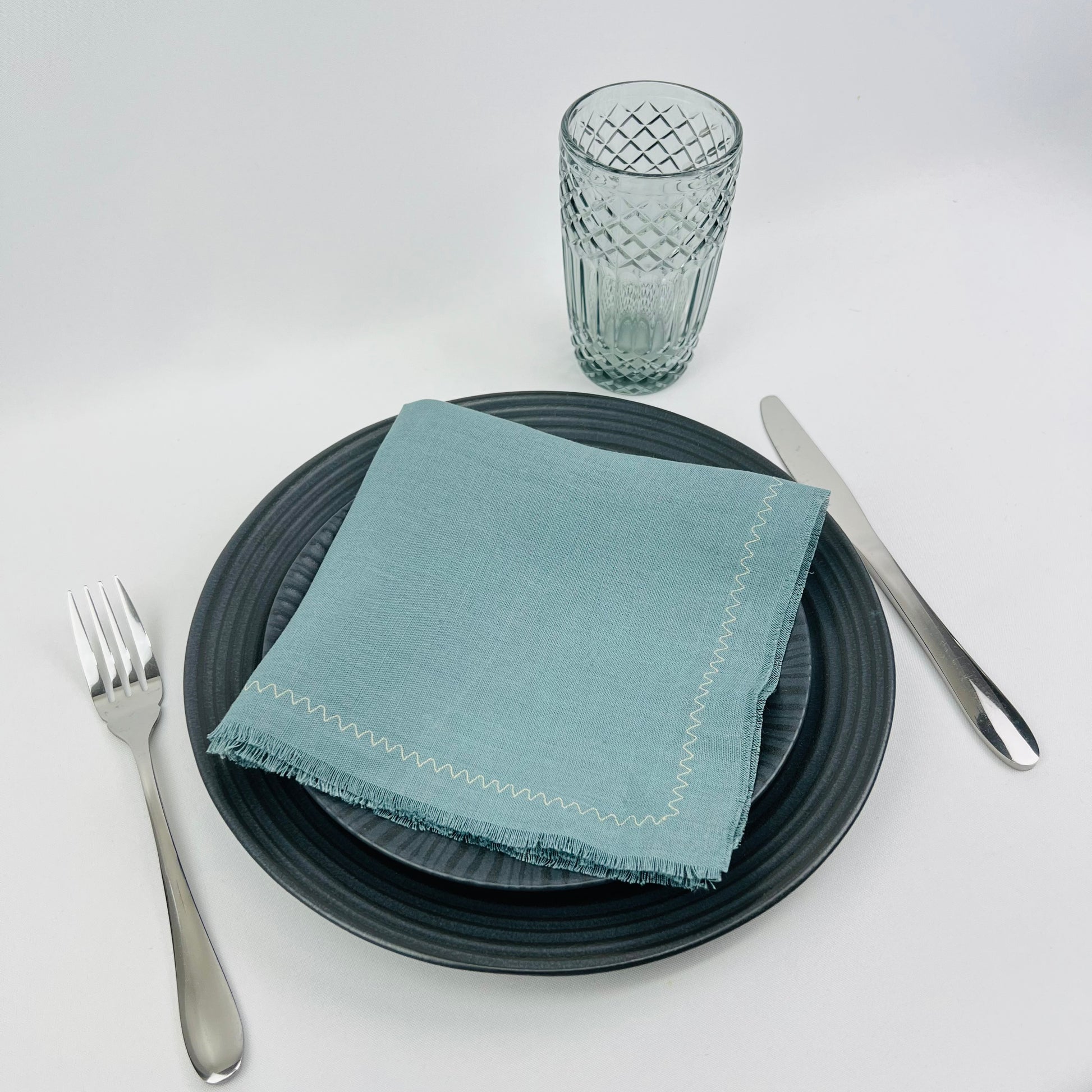 Guardanapo em linho c/ acabamento em ponto zigzag, disponível em várias medidas