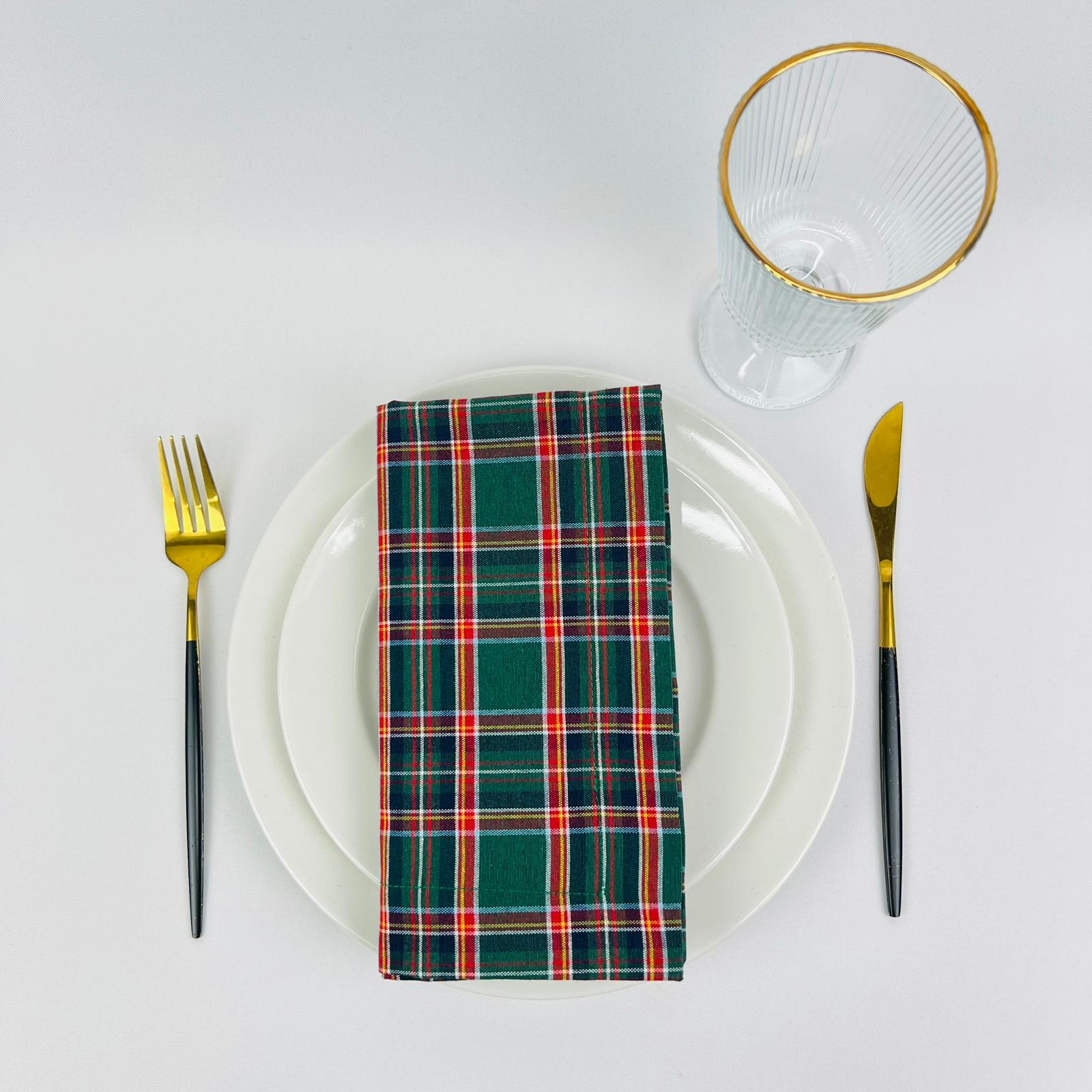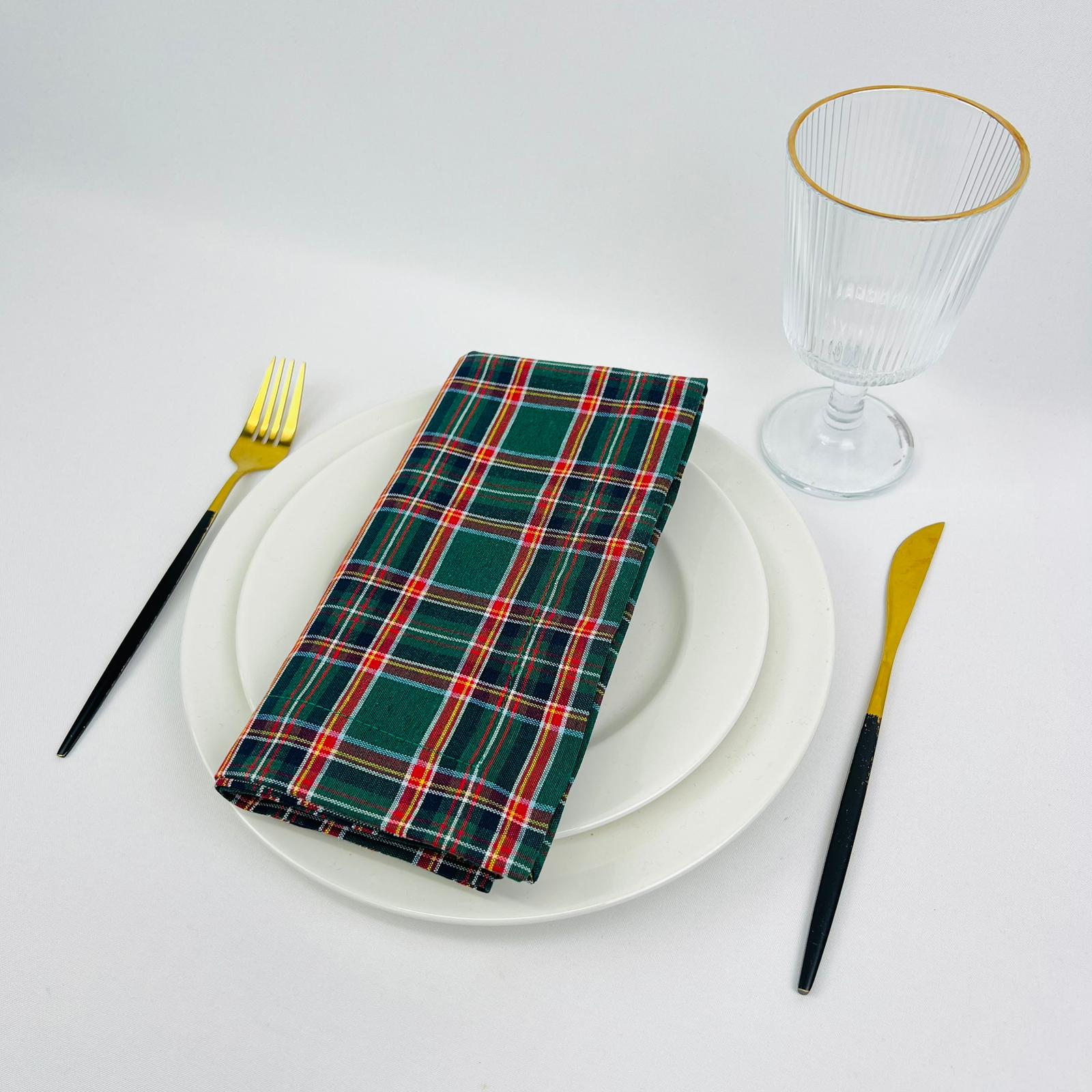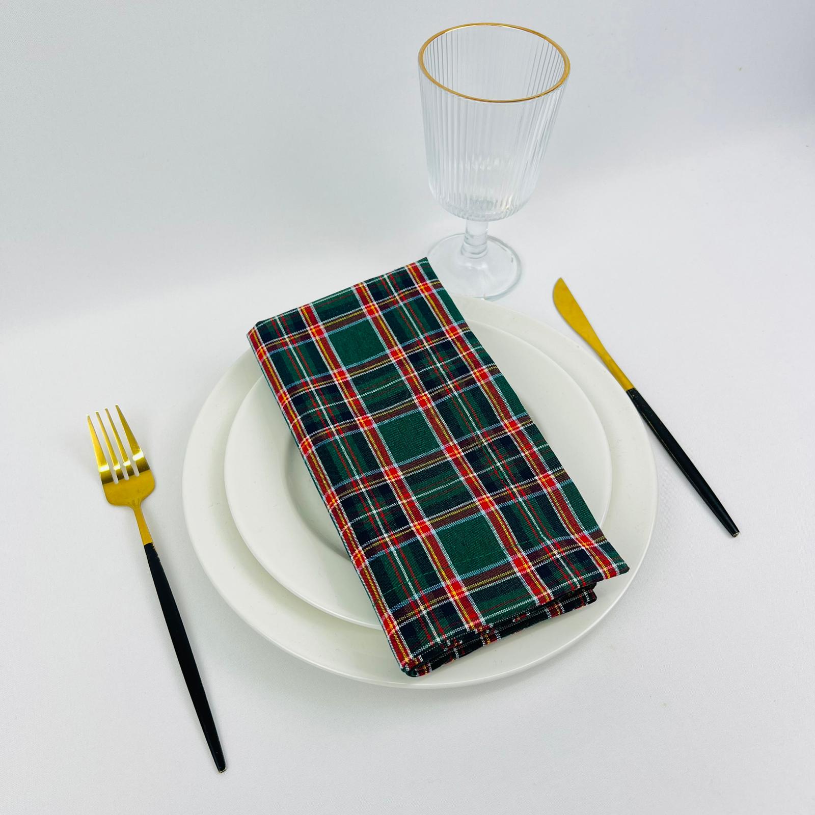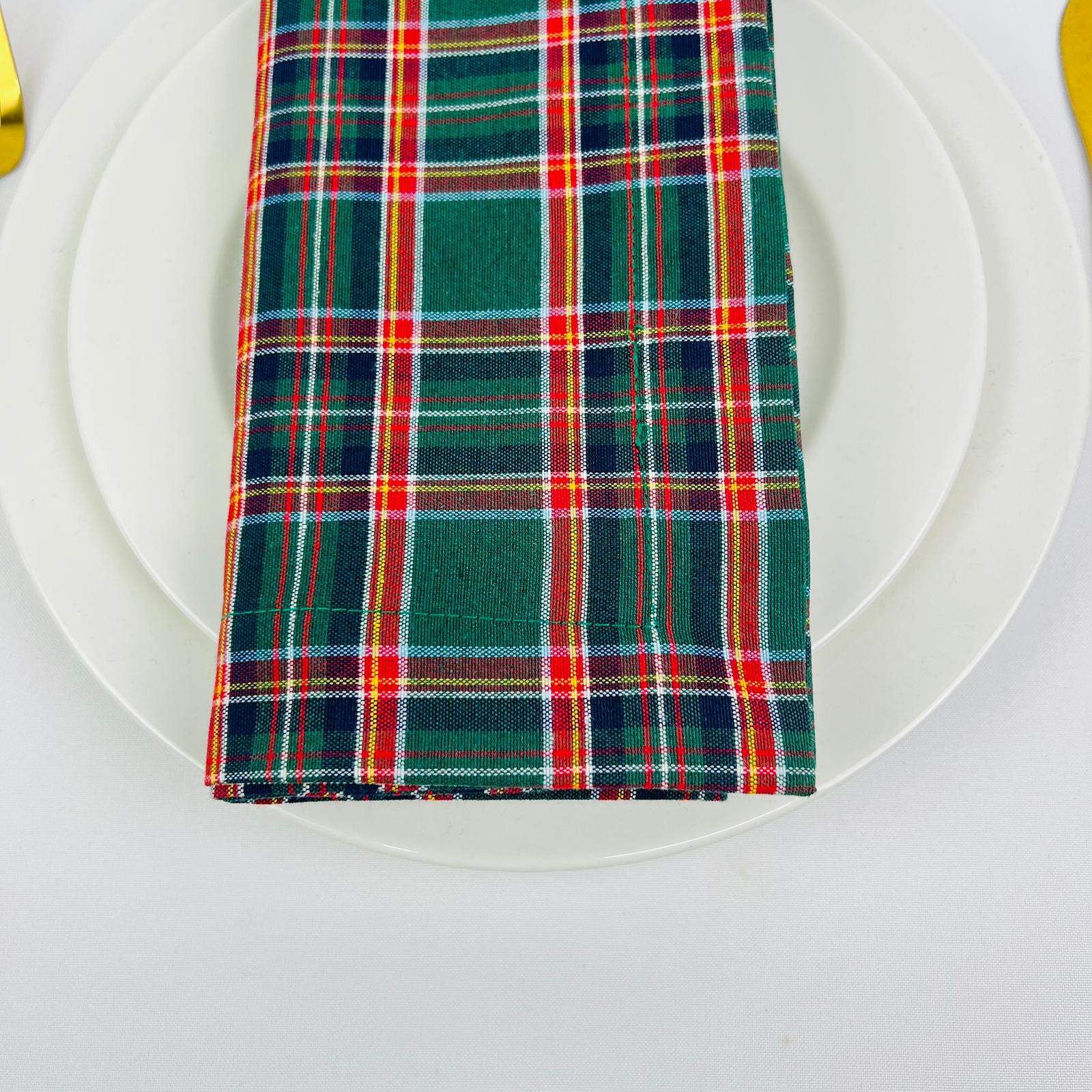 Guardanapo em tons natalícios, c/ acabamento em bainha inglesa