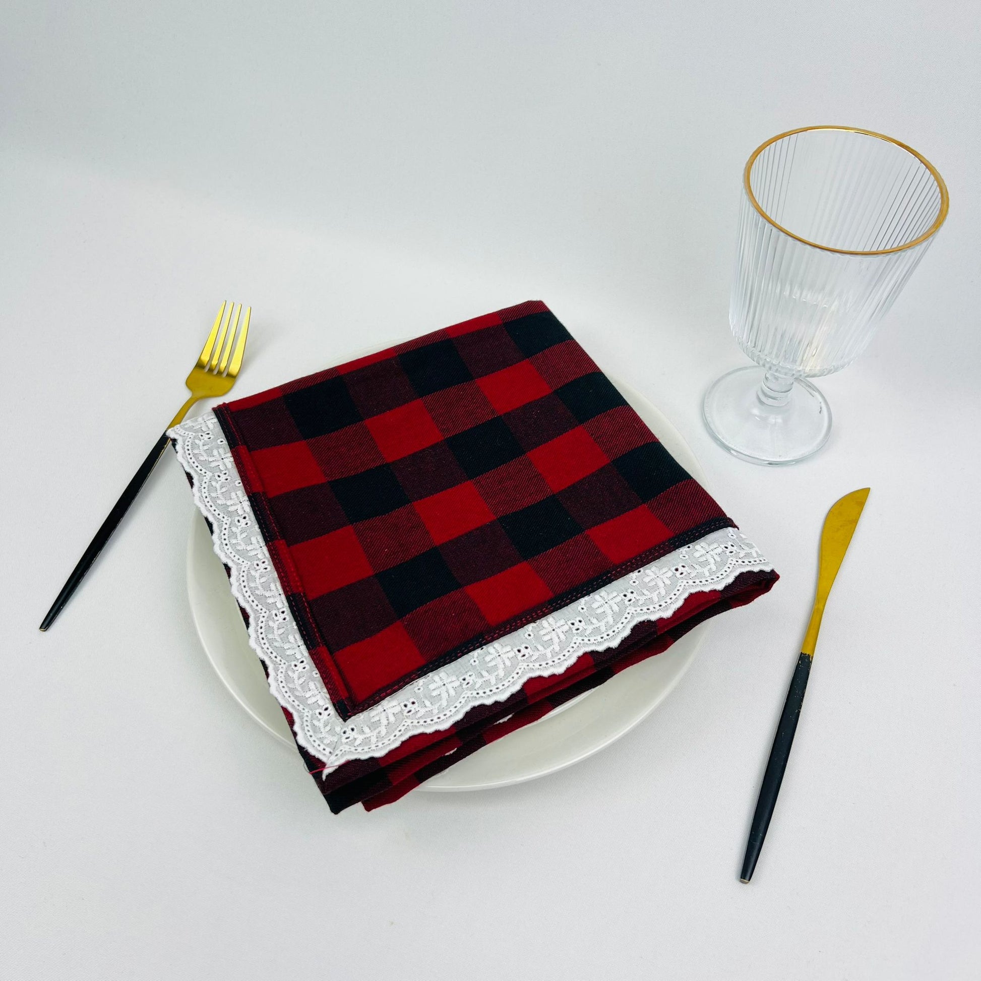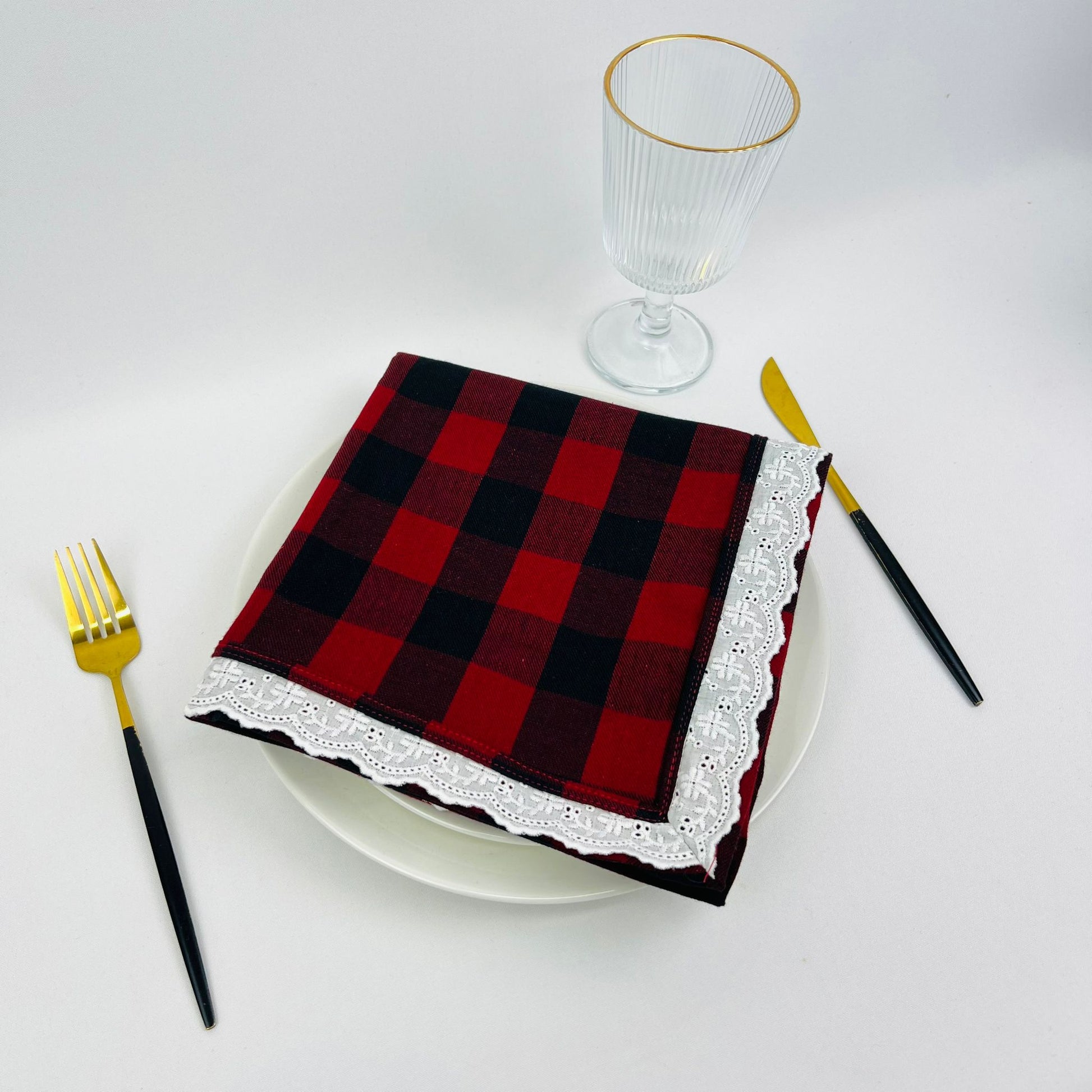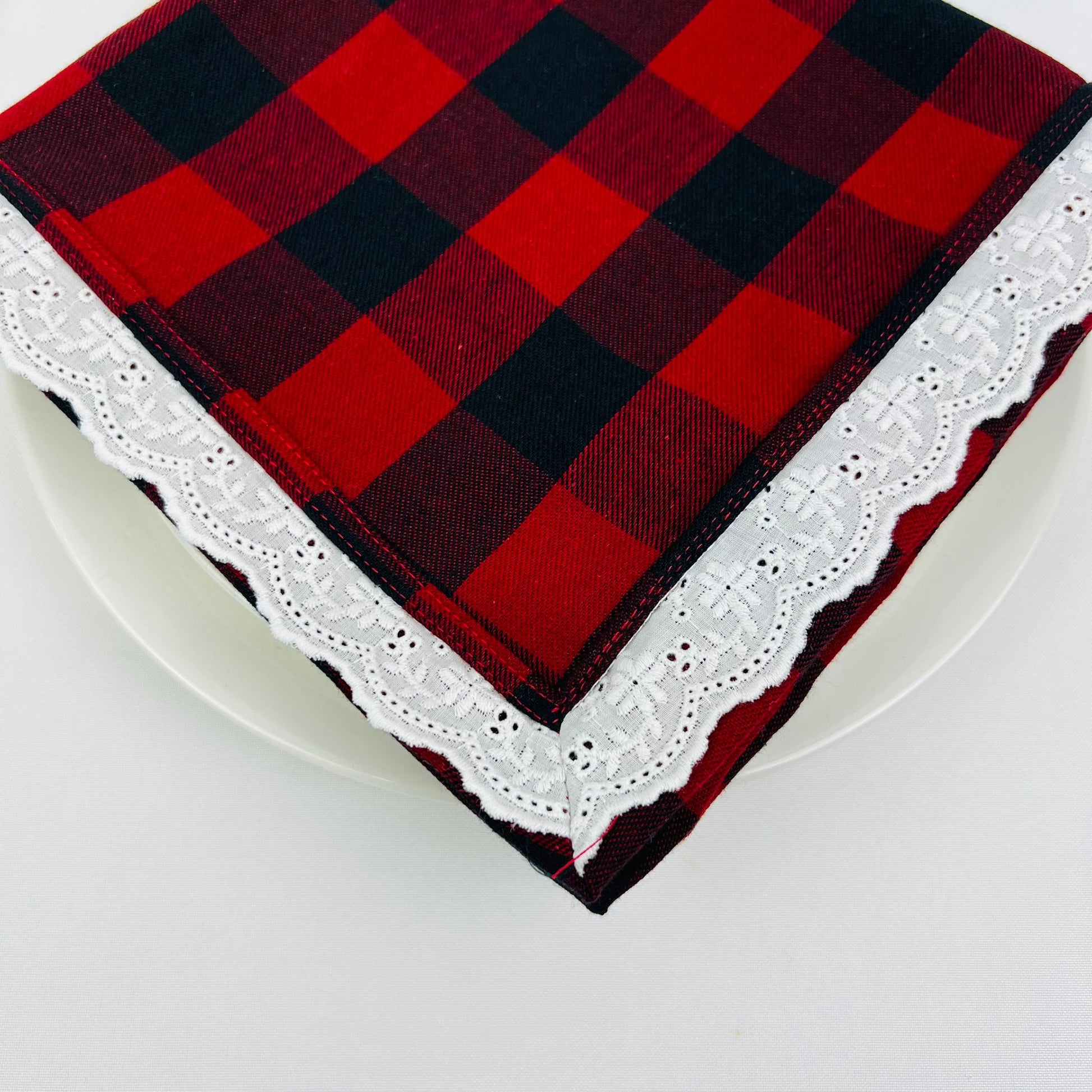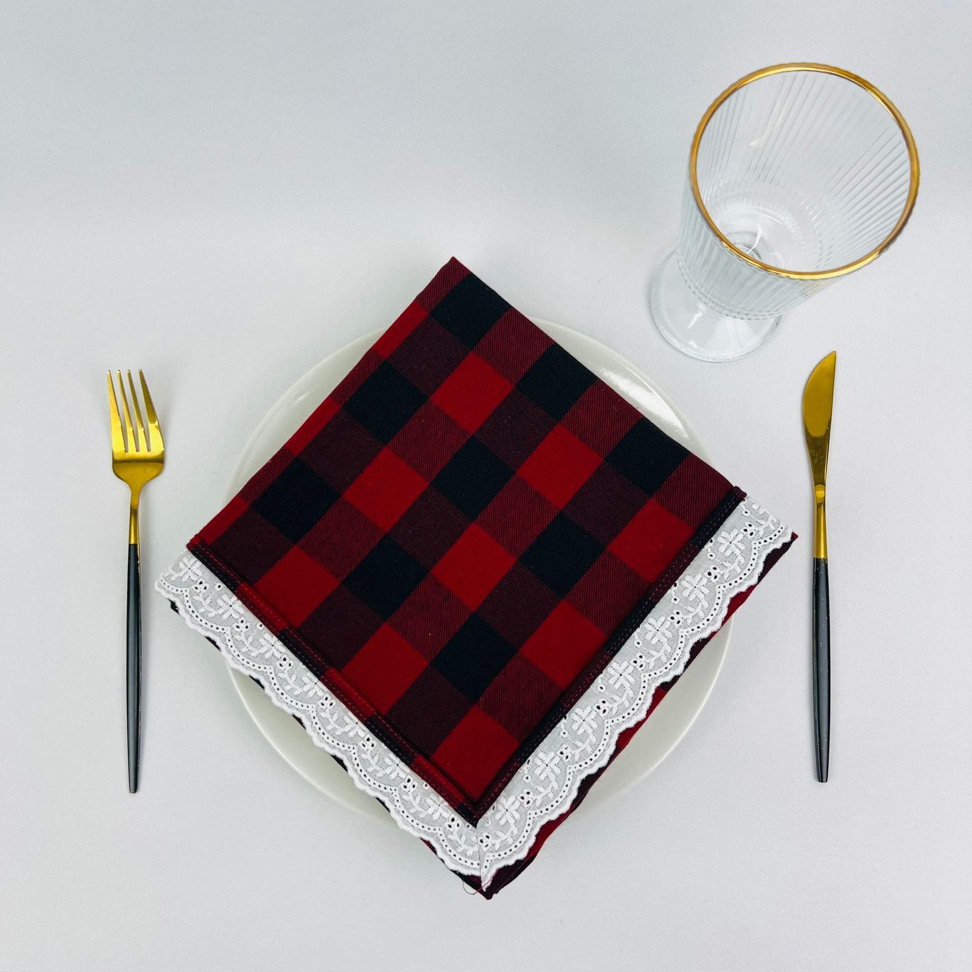 Guardanapo em algodão de tons natalícios c/ acabamento em renda.