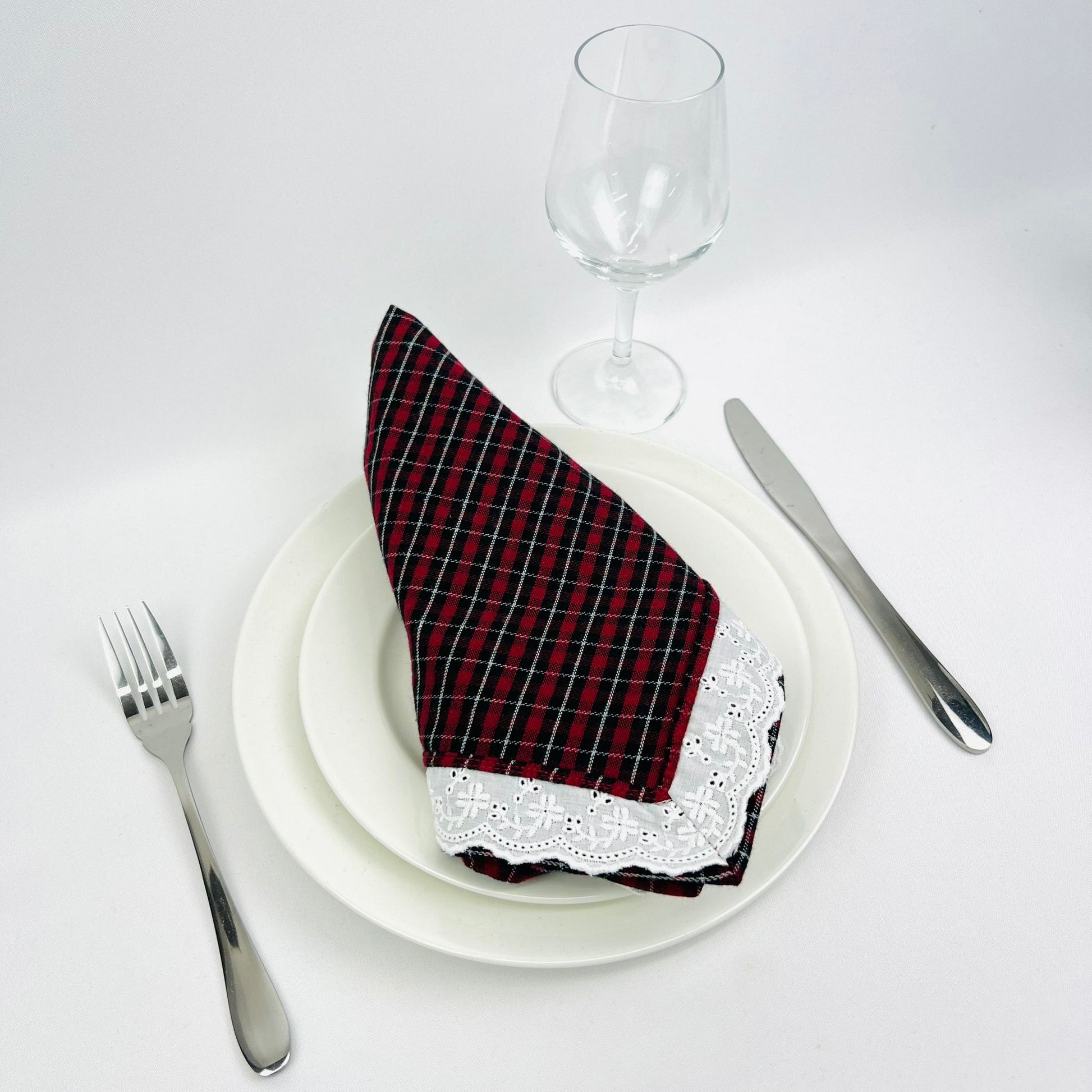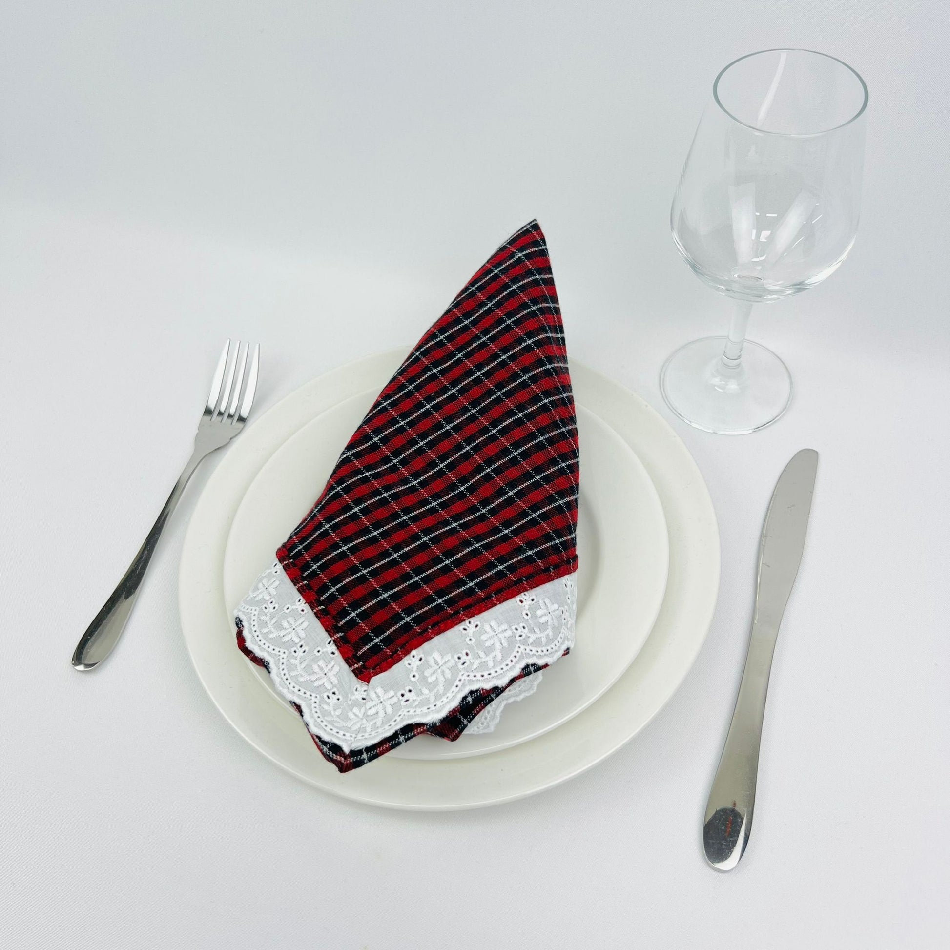 Guardanapo em algodão de tons natalícios c/ acabamento em renda.