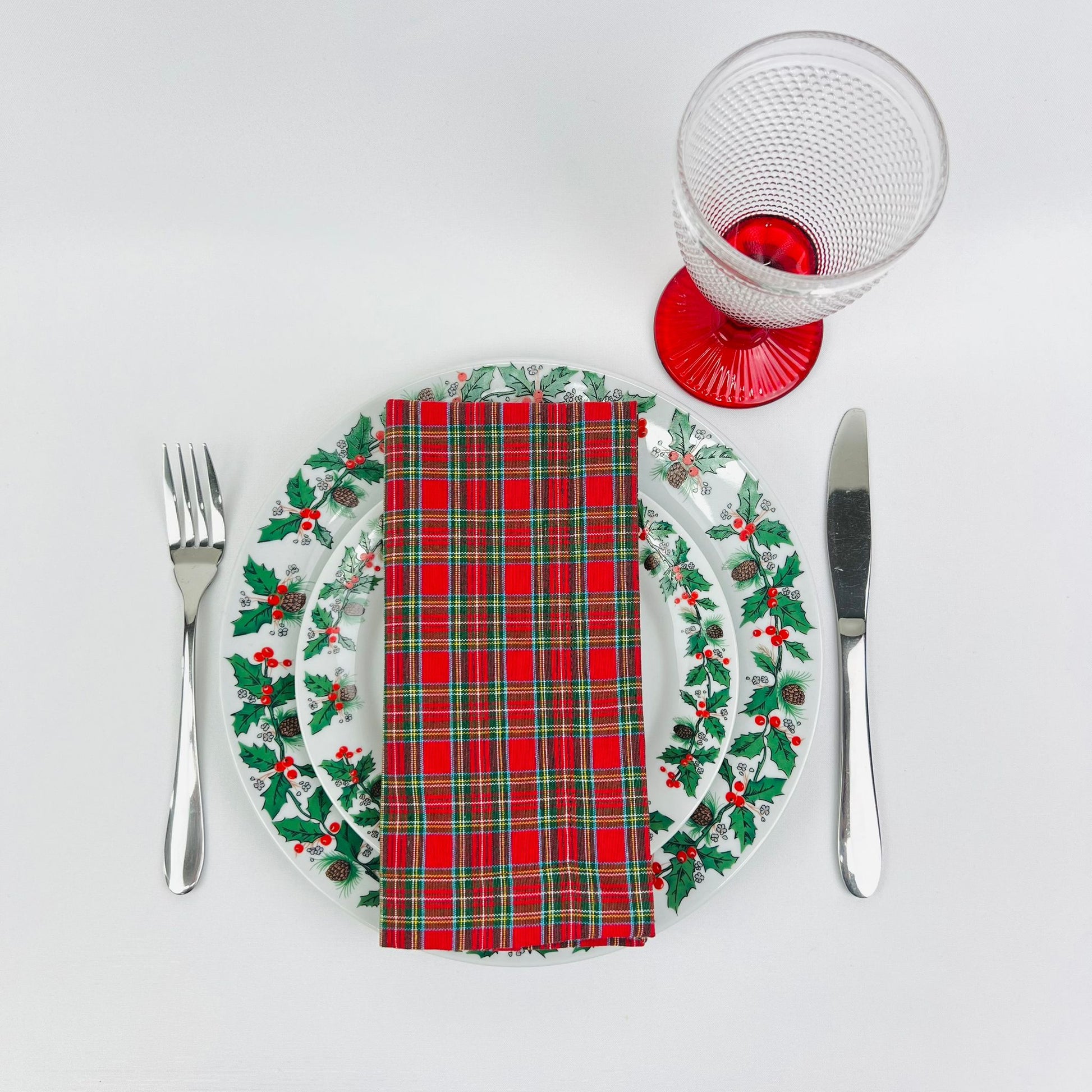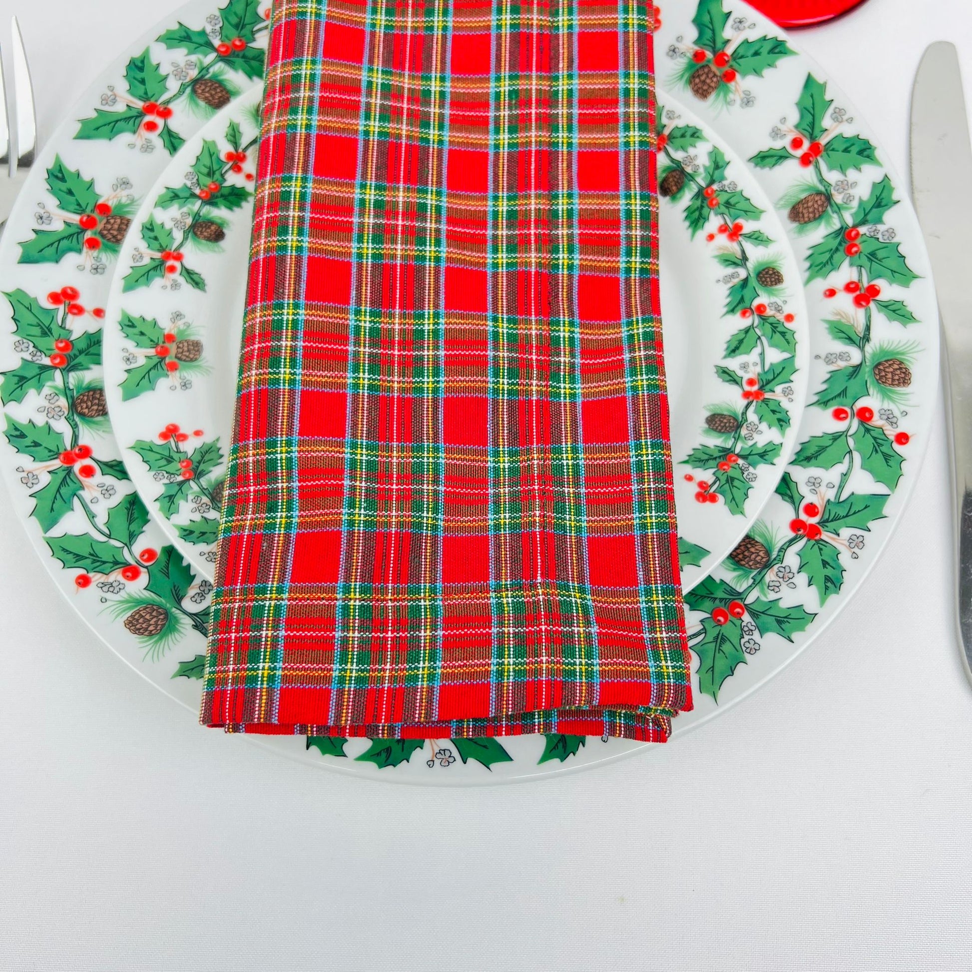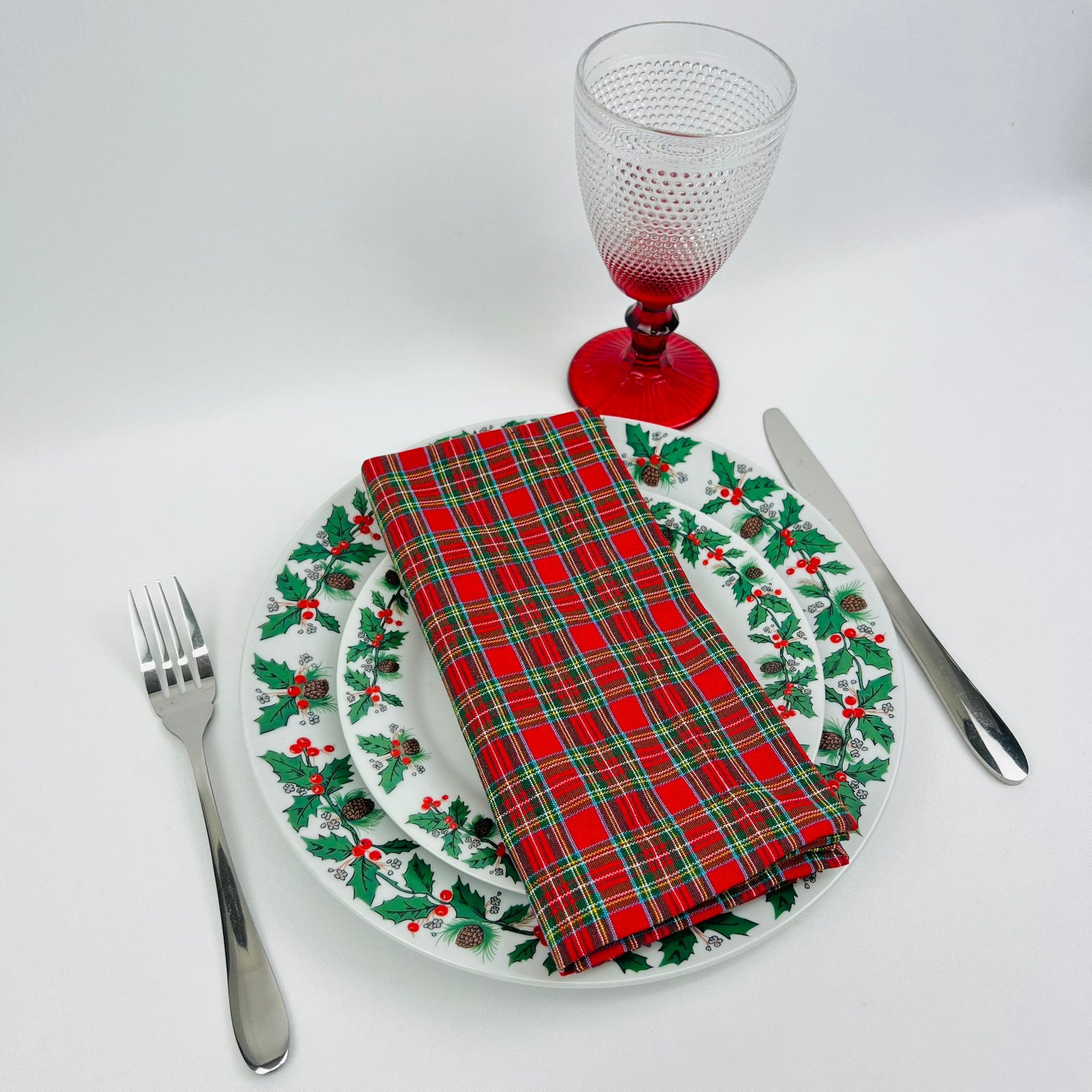 Guardanapo em tons natalícios, c/ abamento em bainha inglesa