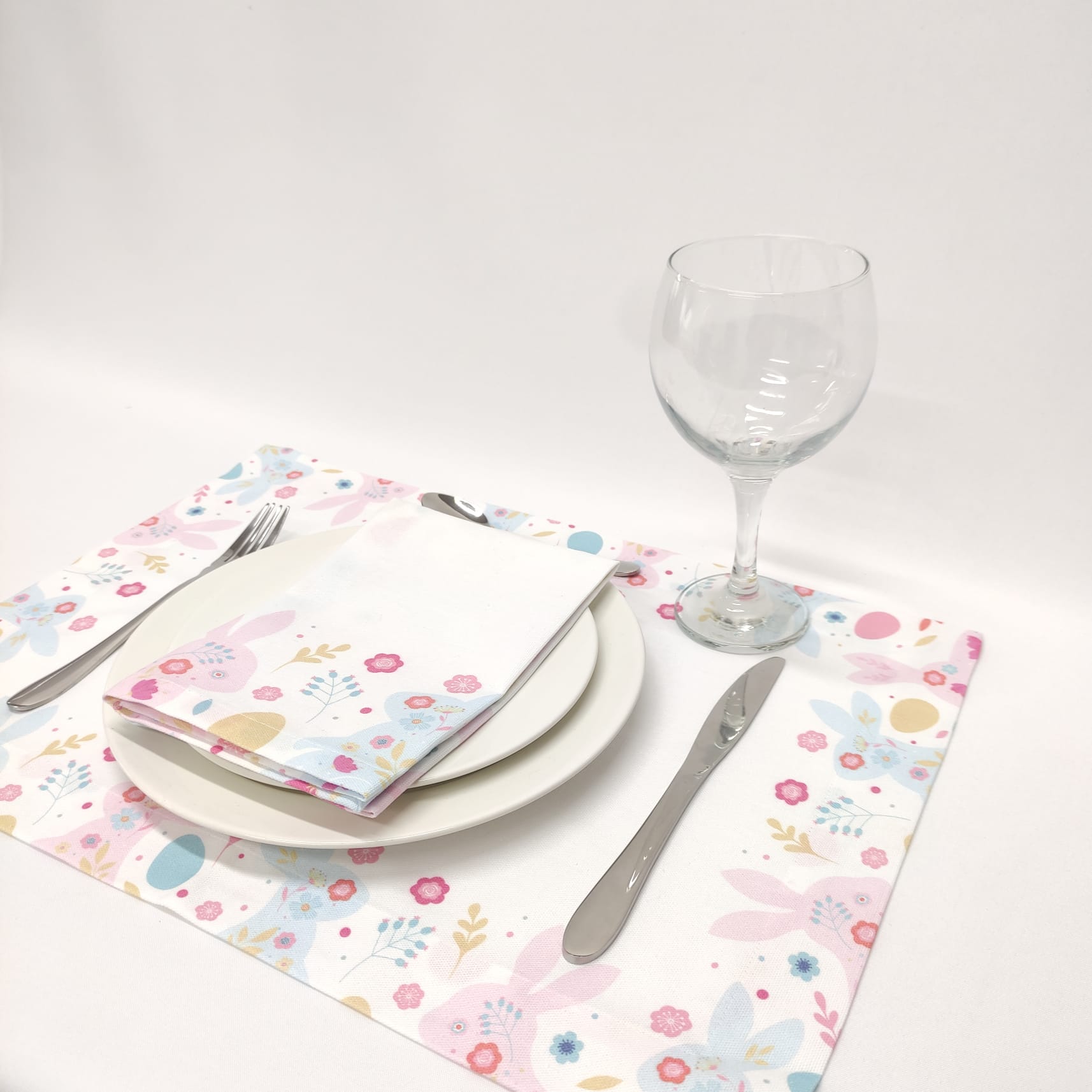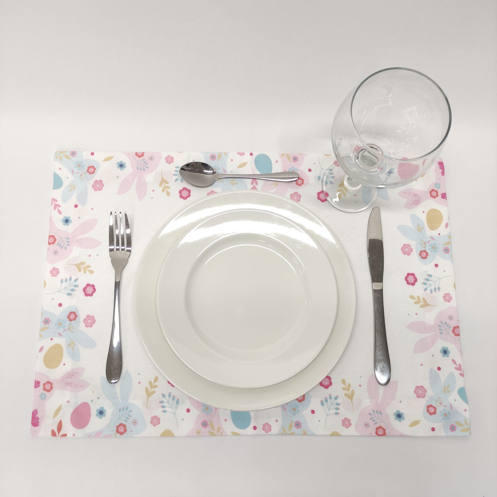 Individual de mesa em algodão, 35x50 cm aprox., c/ estampado digital e acabamento em bainha inglesa.