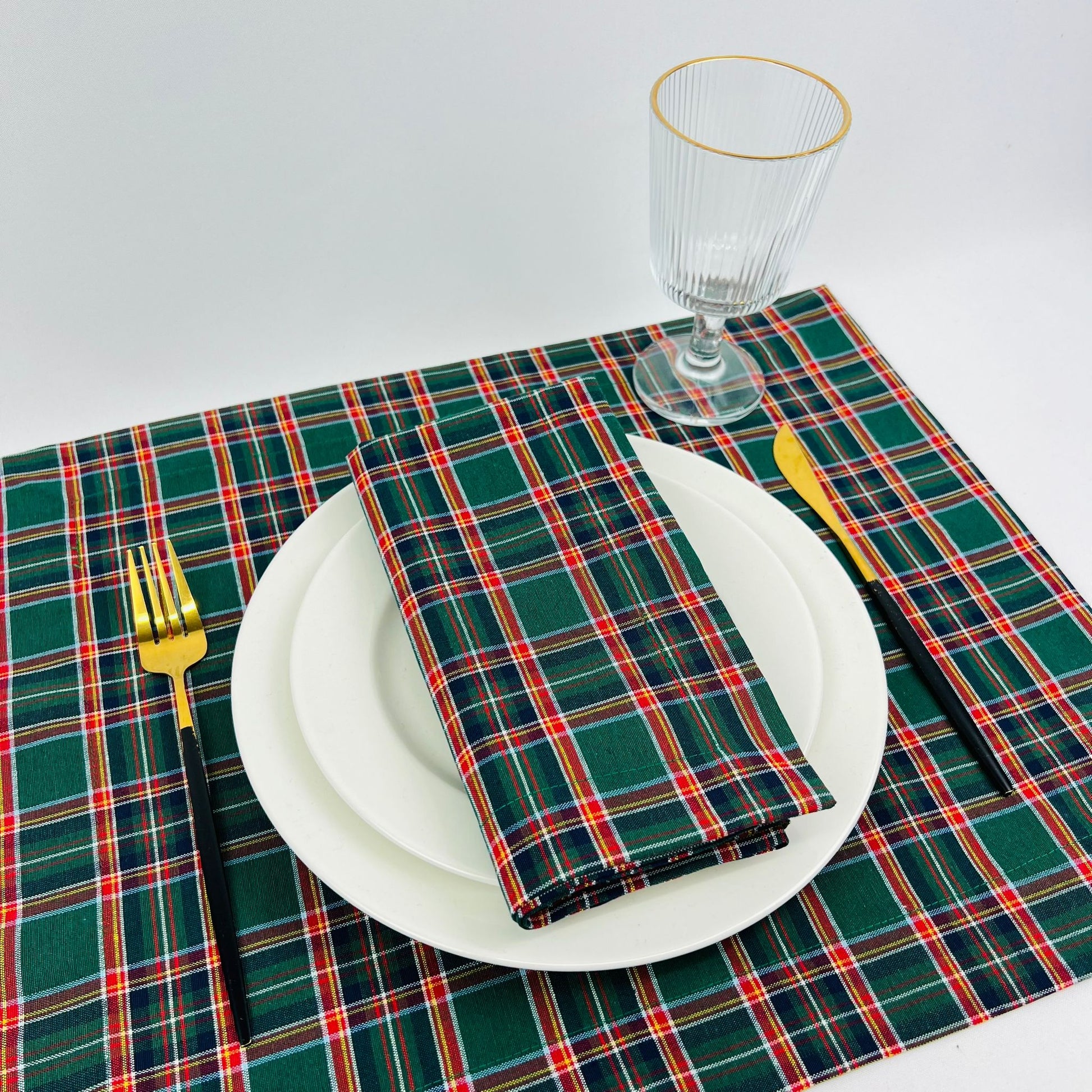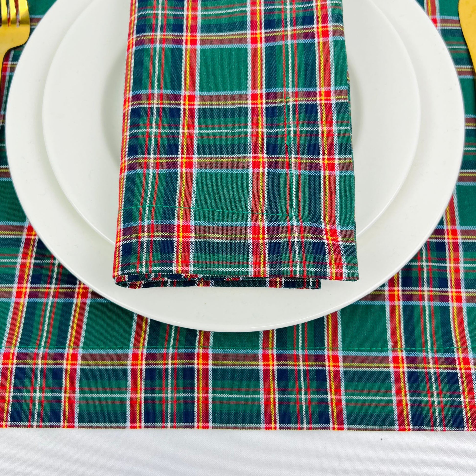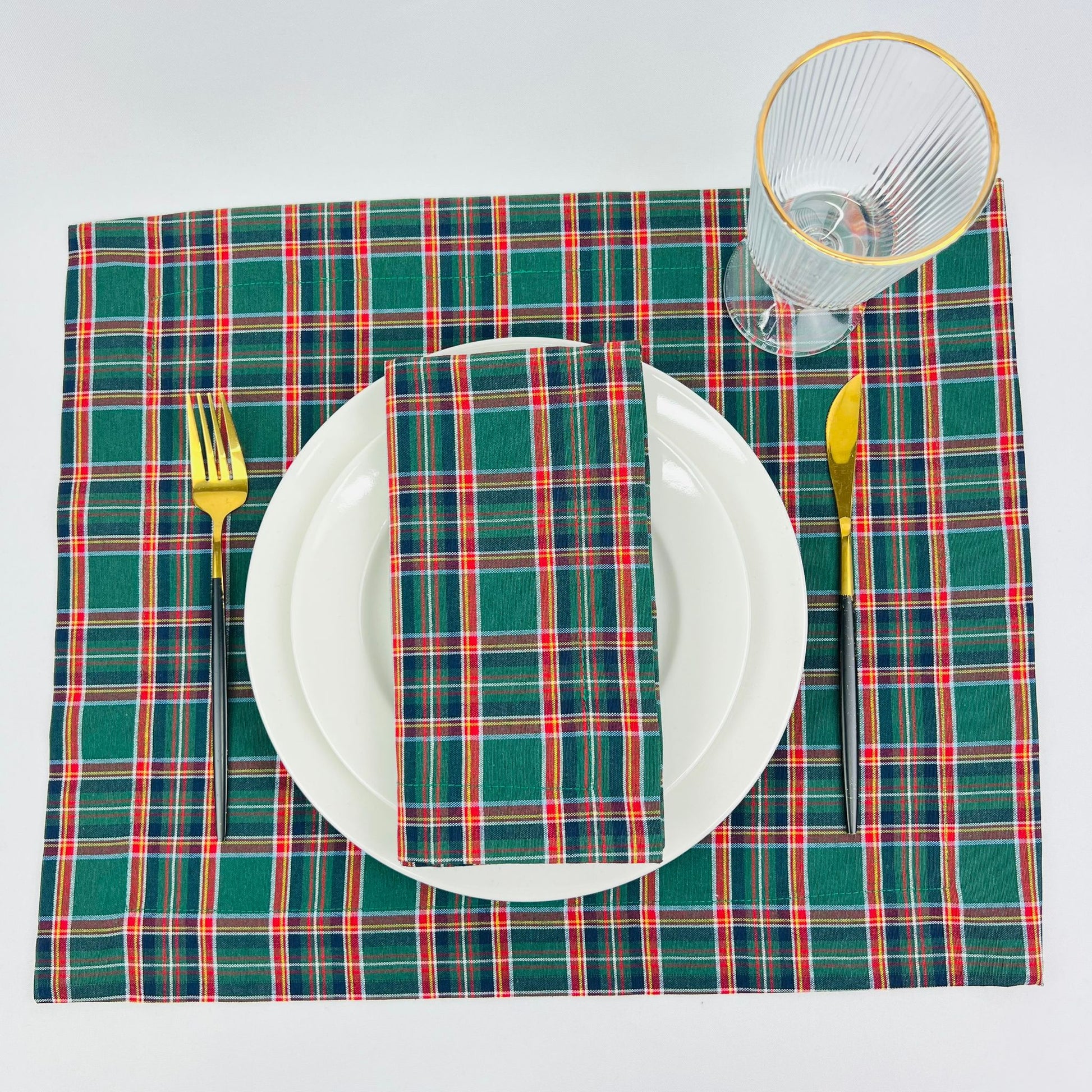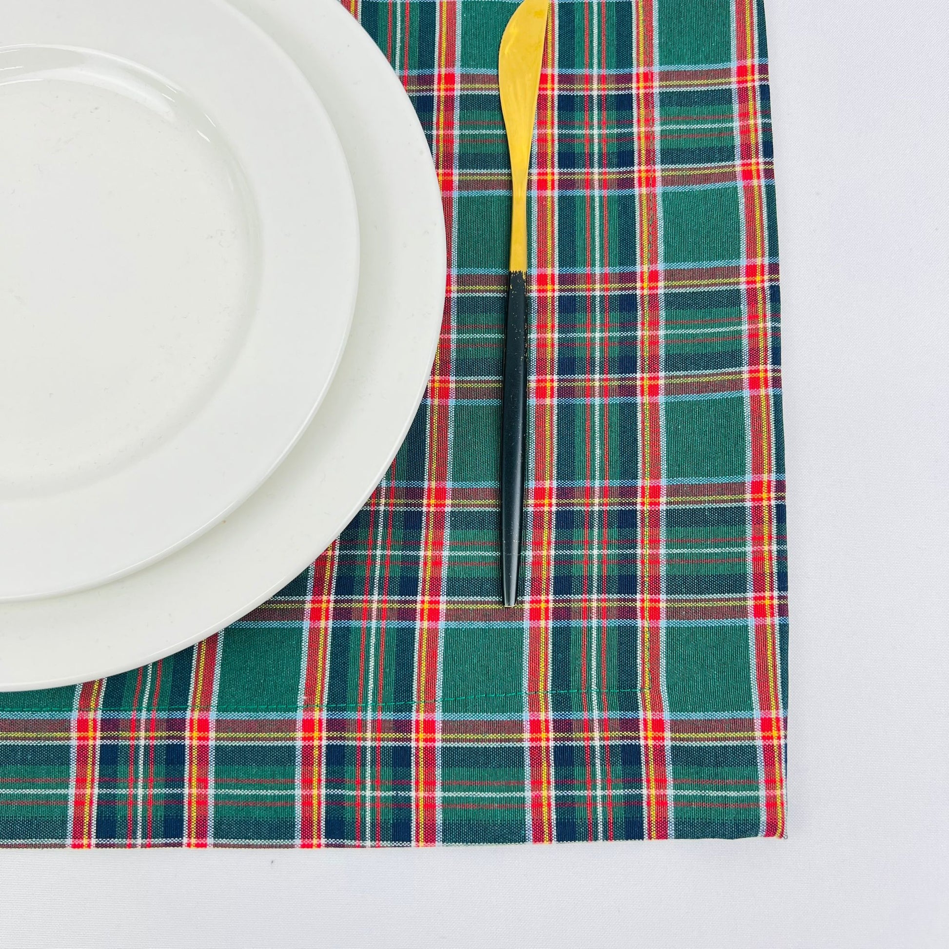 Individual em algodão de tons natalícios com acabamento em bainha inglesa.