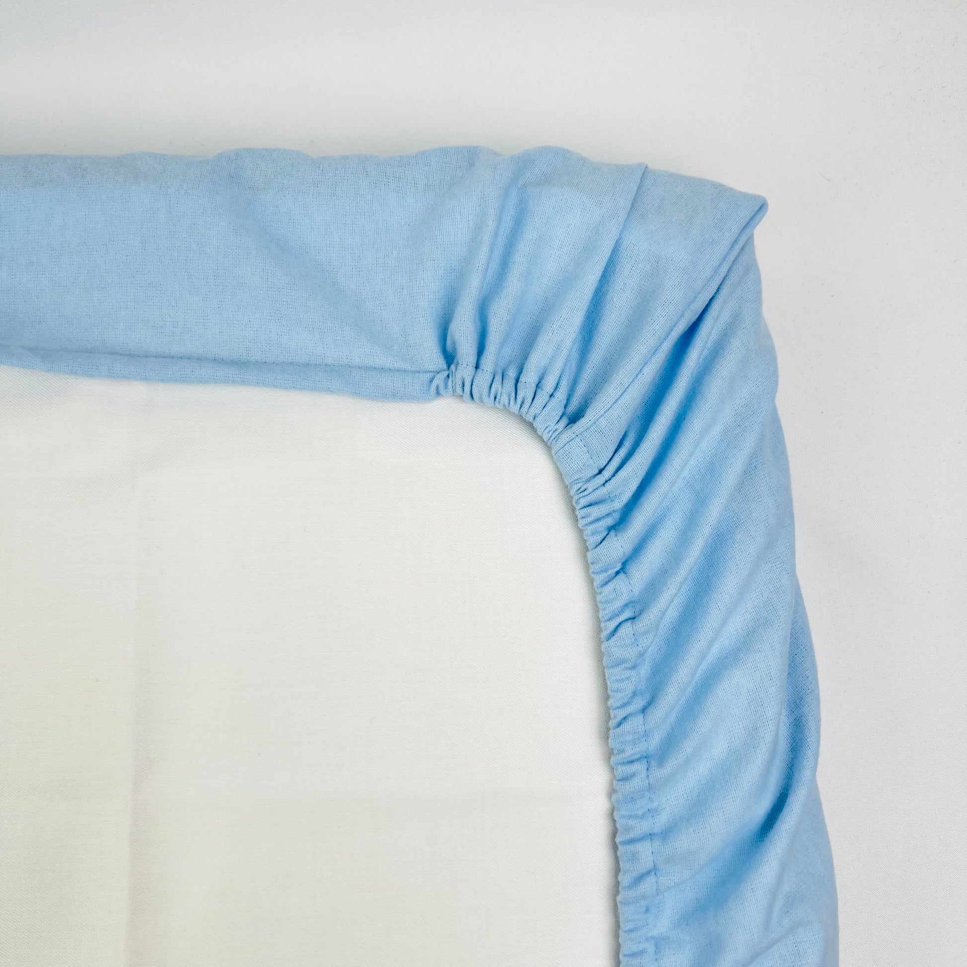 Lençol de baixo ajustável em flanela de algodão azul, disponível em várias medidas.