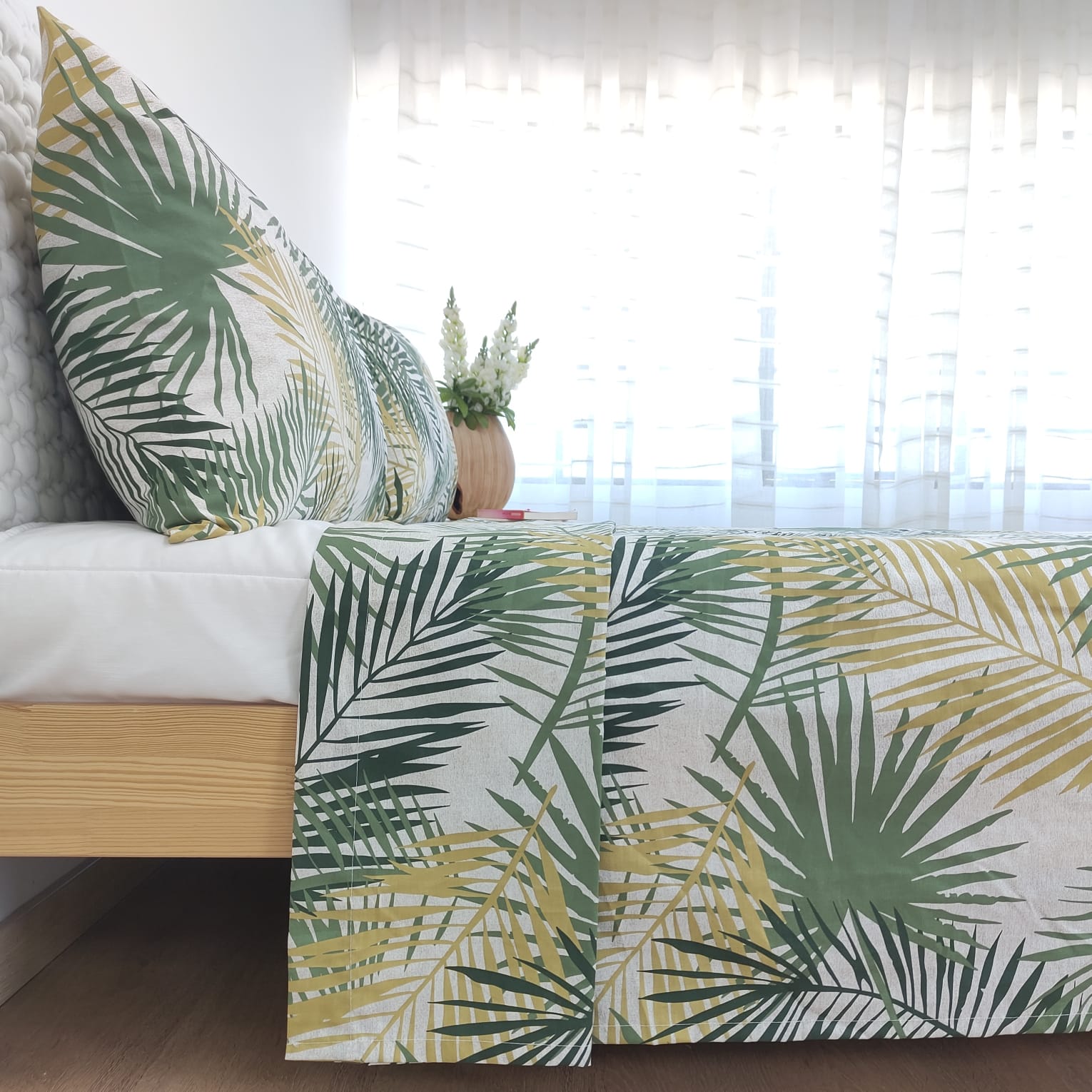 Lençol de cima em algodão estampado, disponível em várias medidas.