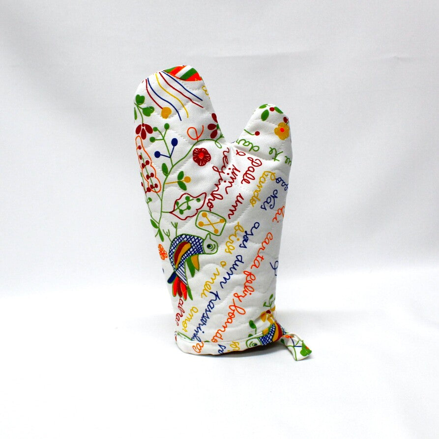 Luva em algodão c/estampado, 25x15cm, acolchoada.