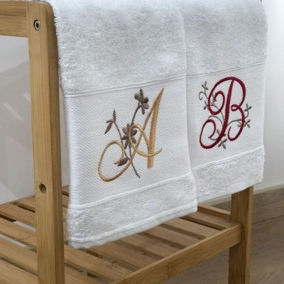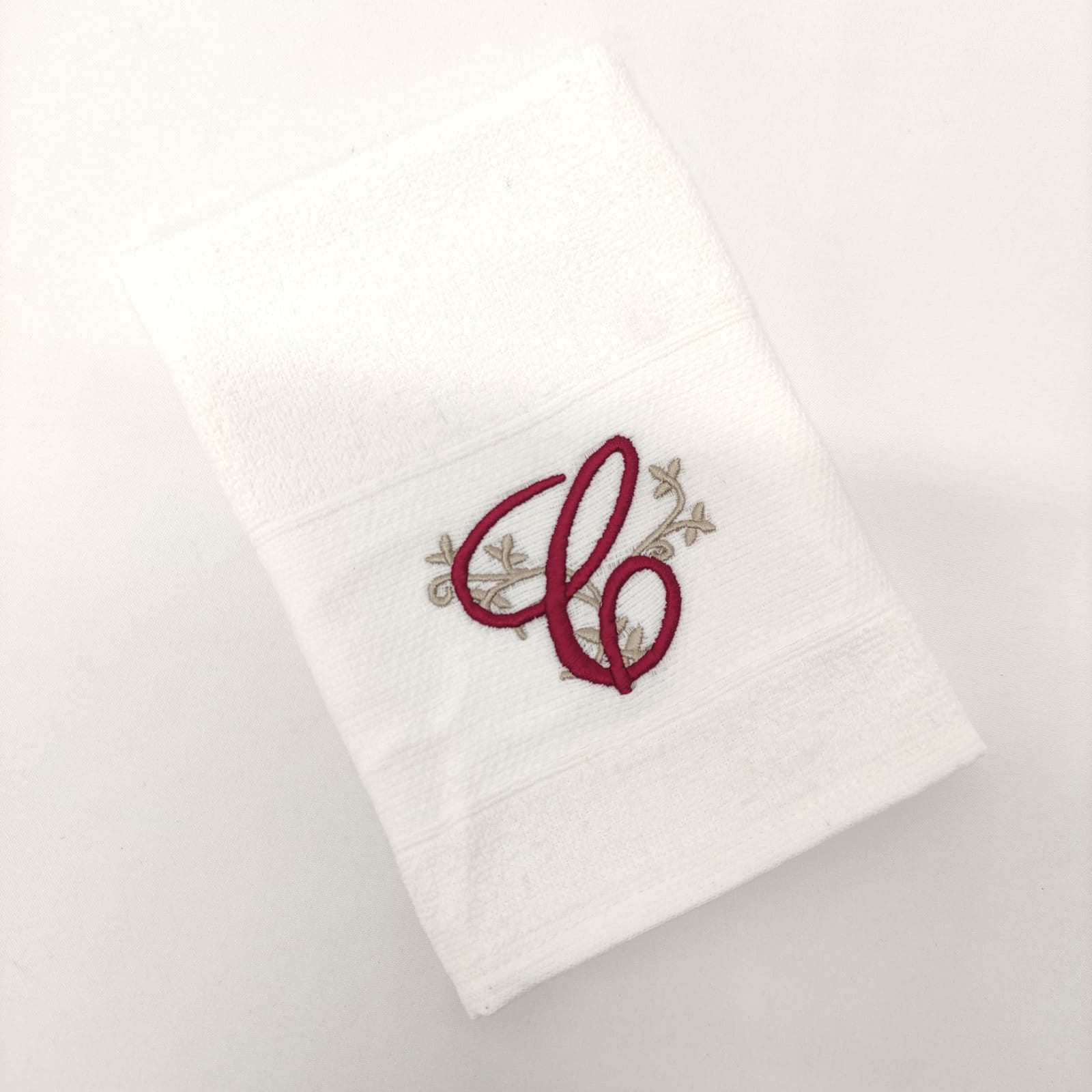 Pano de cozinha em felpo de algodão branco, 50x50cm aprox., c/ bordado.