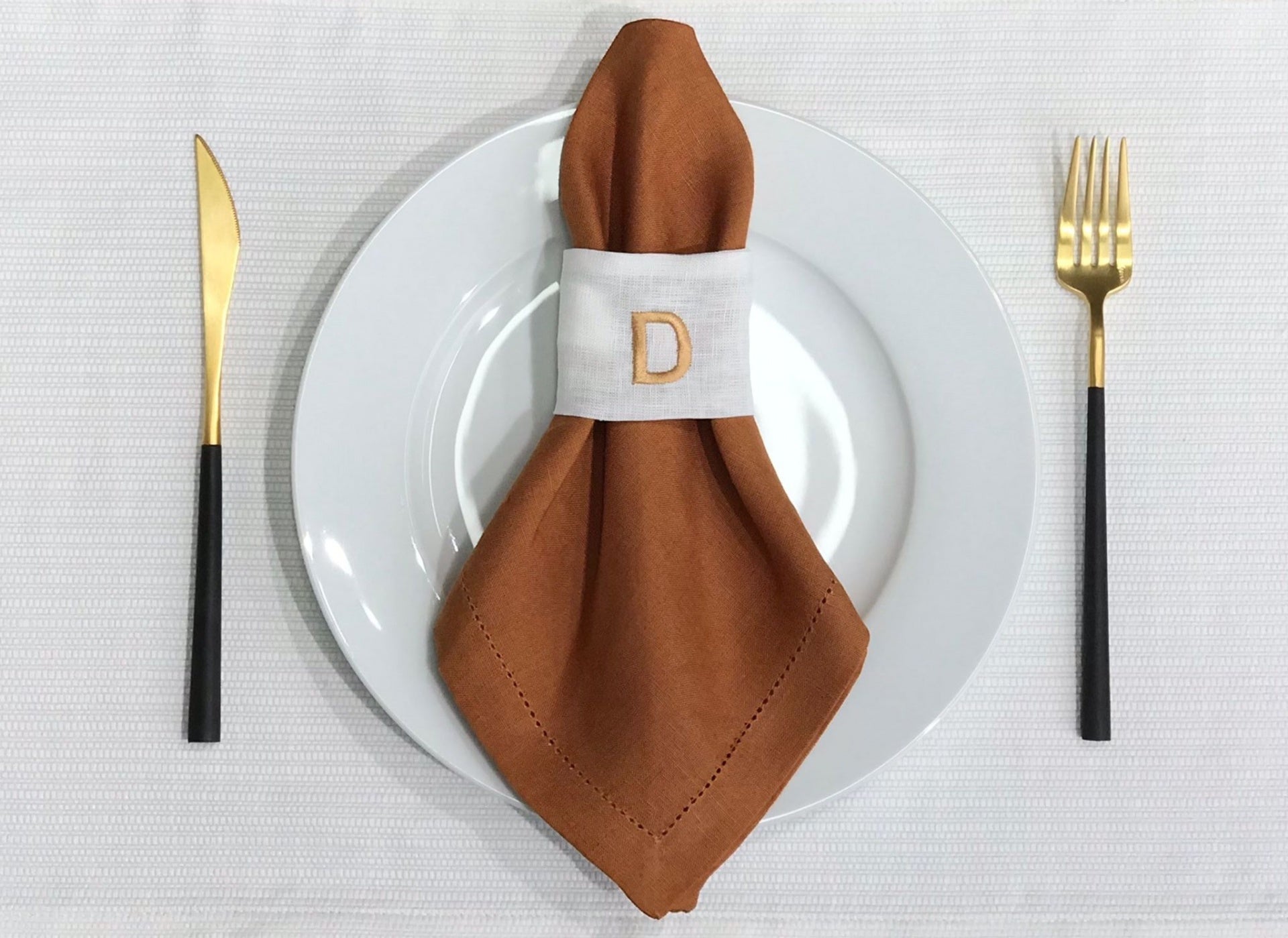Porta Guardanapo Linho e Bordado Dourado