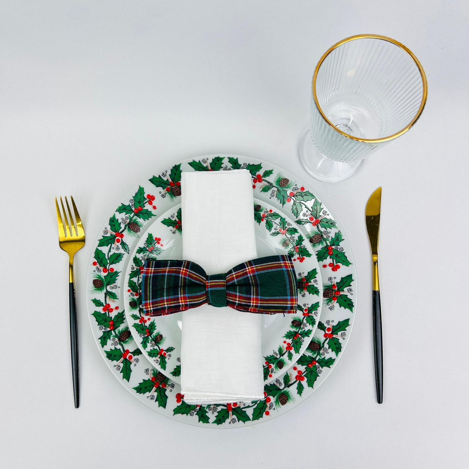 Porta guardanapos em algodão, na forma de laço, ideal para ocasiões especiais.