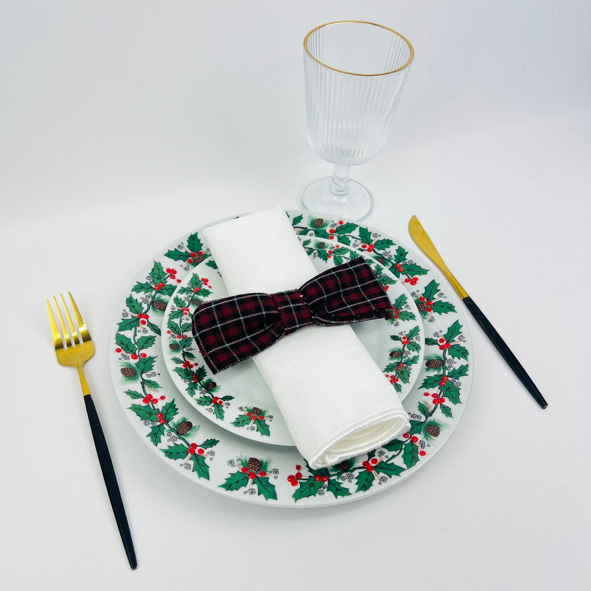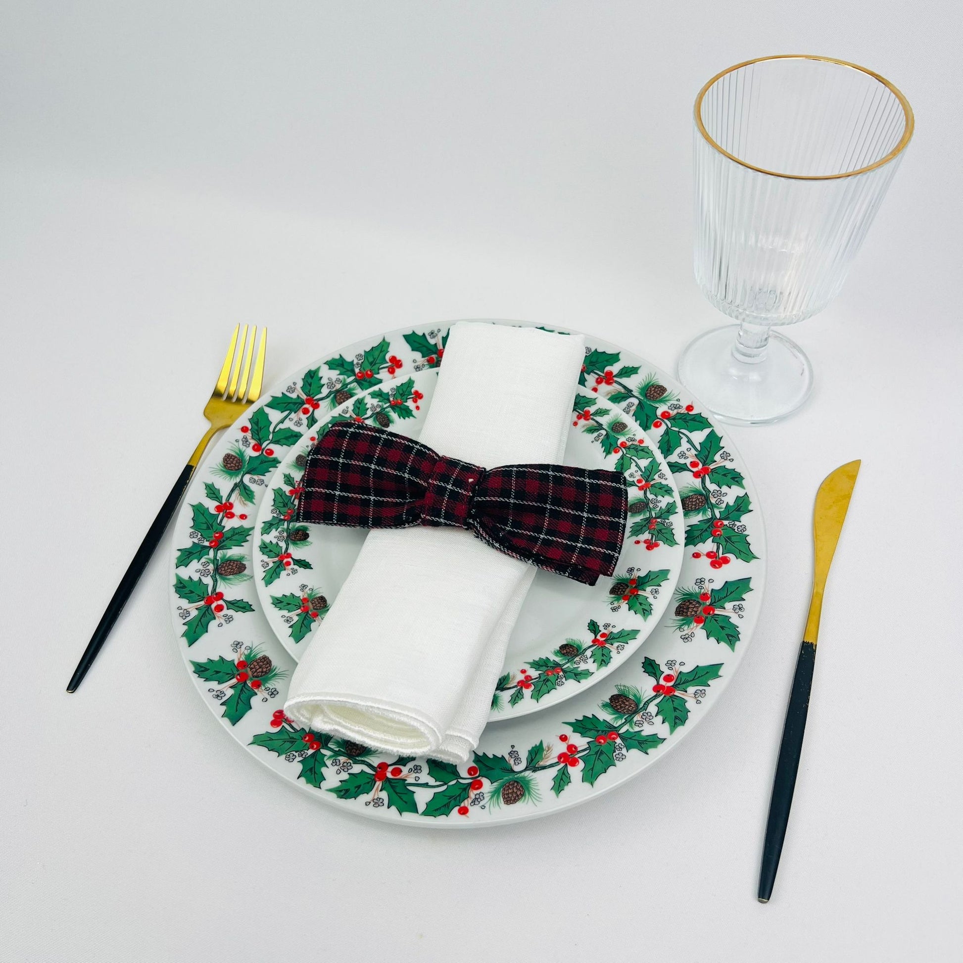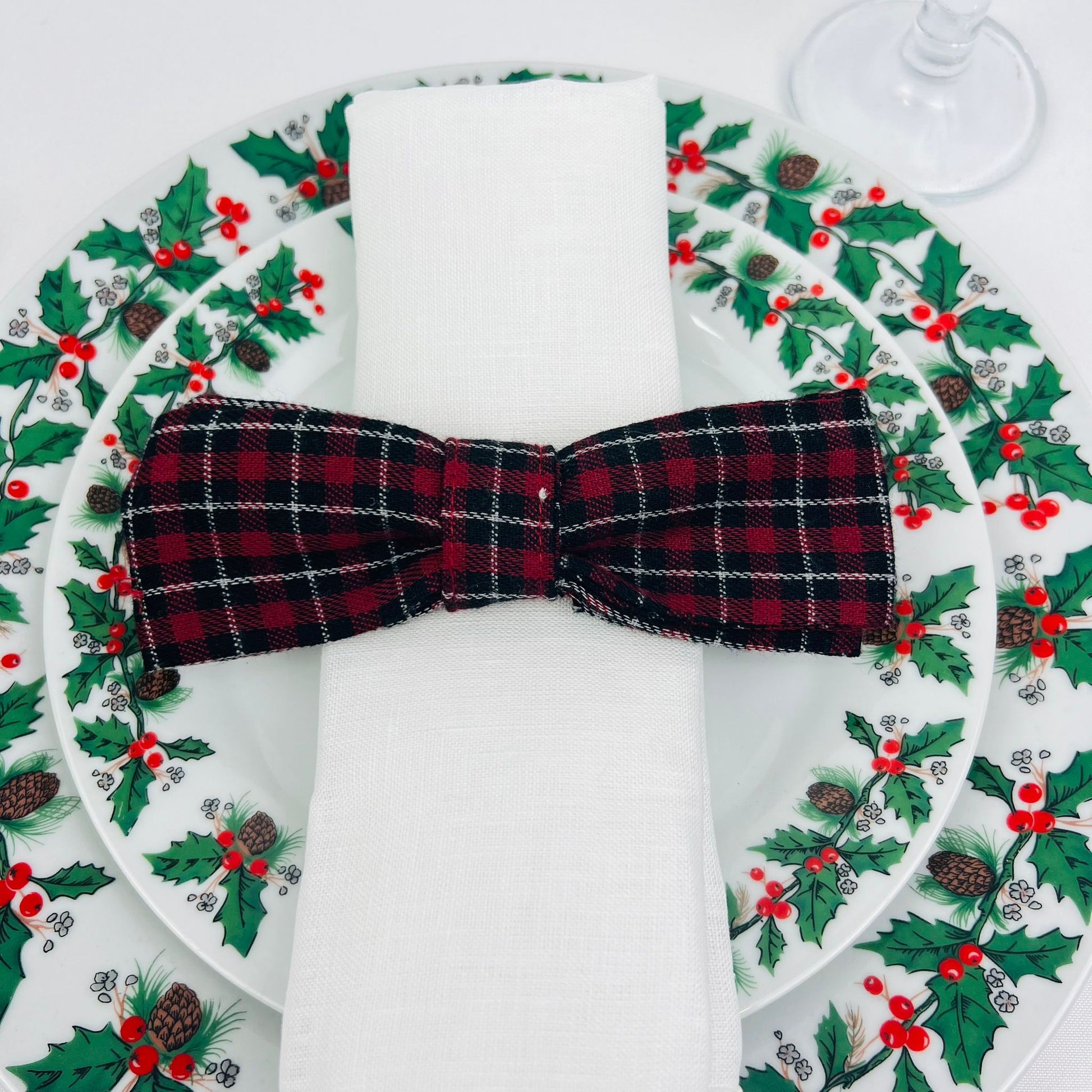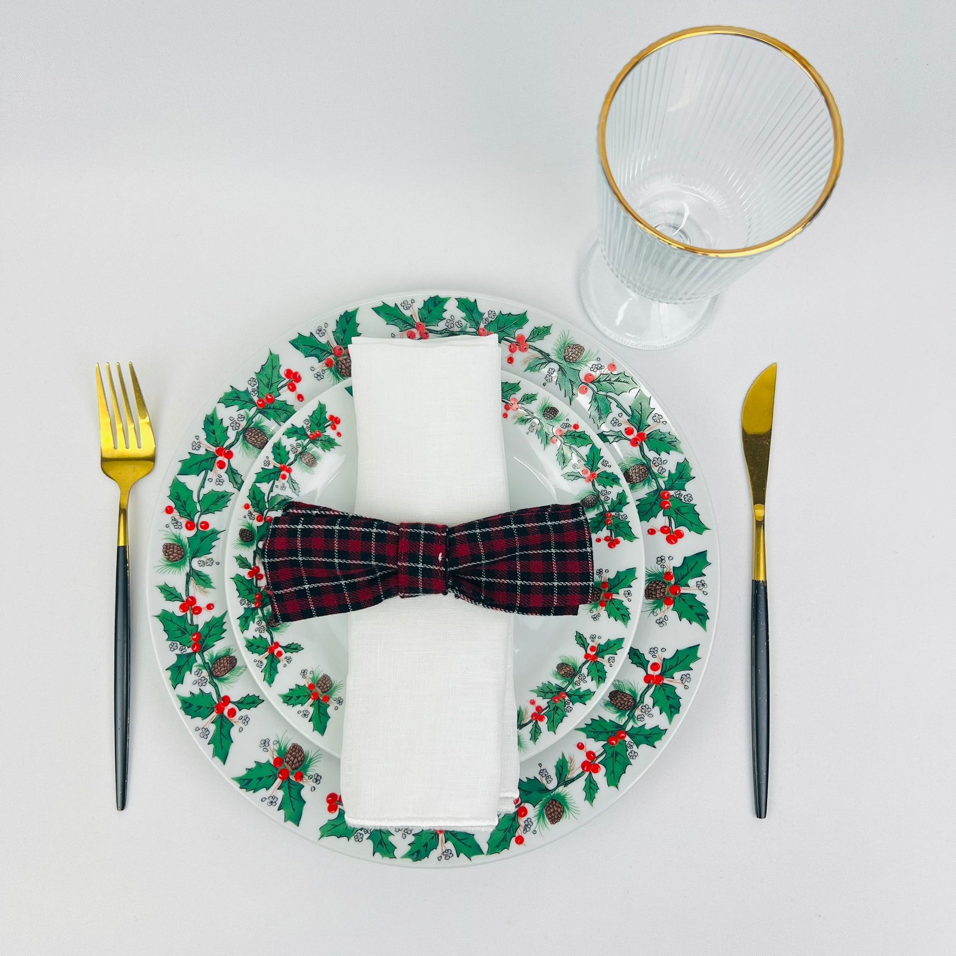 Porta guardanapos em algodão vichy, na forma de laço, ideal para ocasiões especiais.