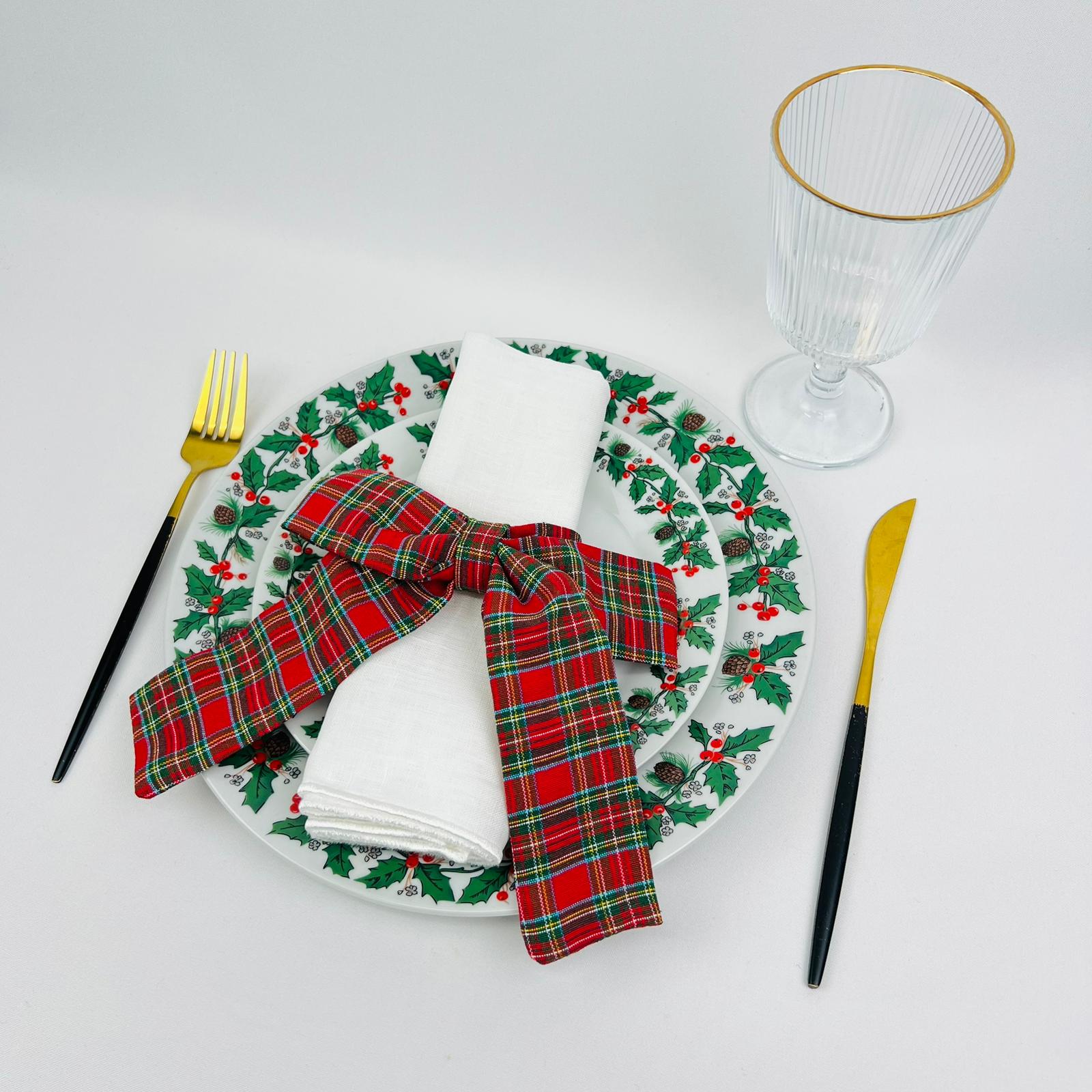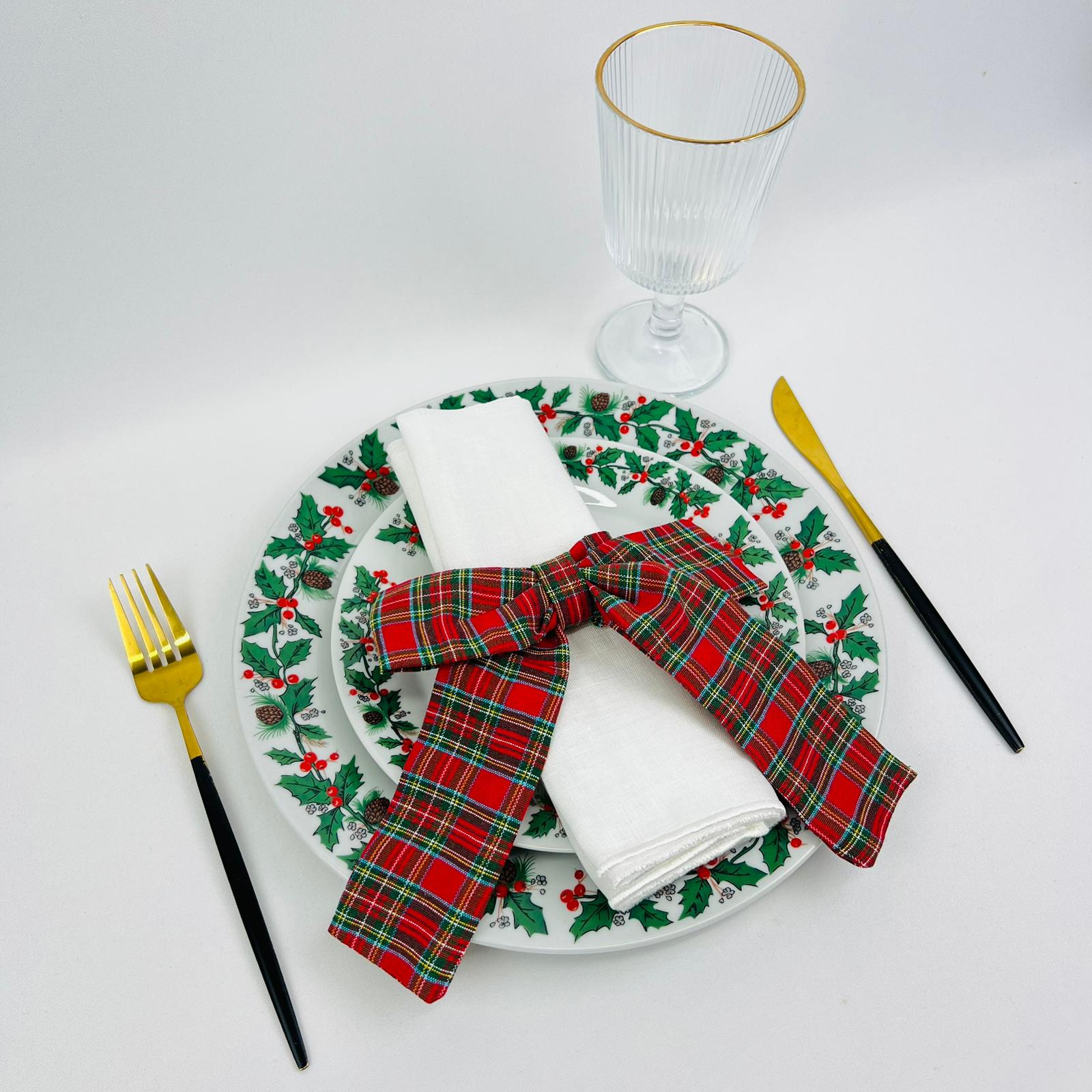 Porta guardanapos em algodão, na forma de laço completo, ideal para ocasiões especiais.