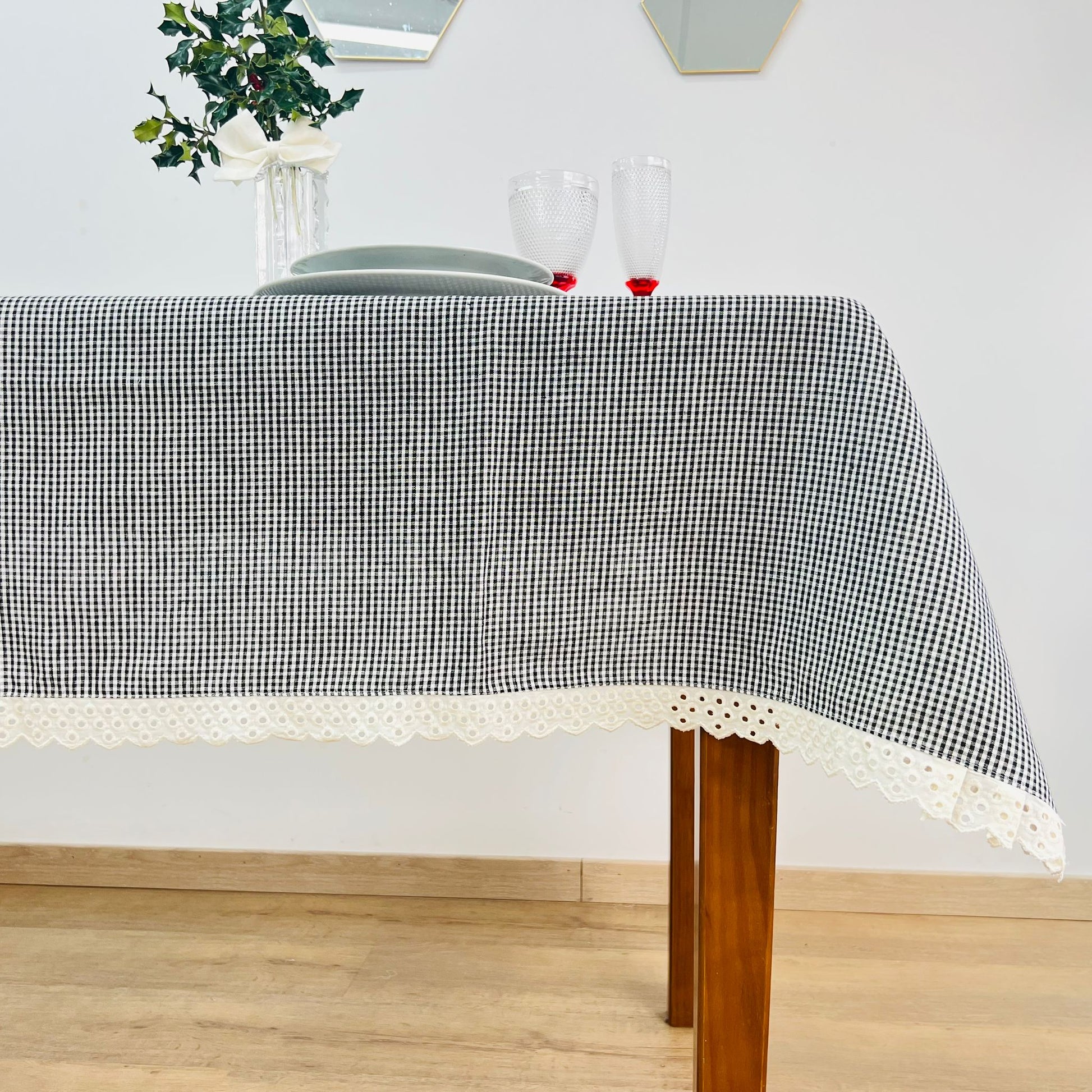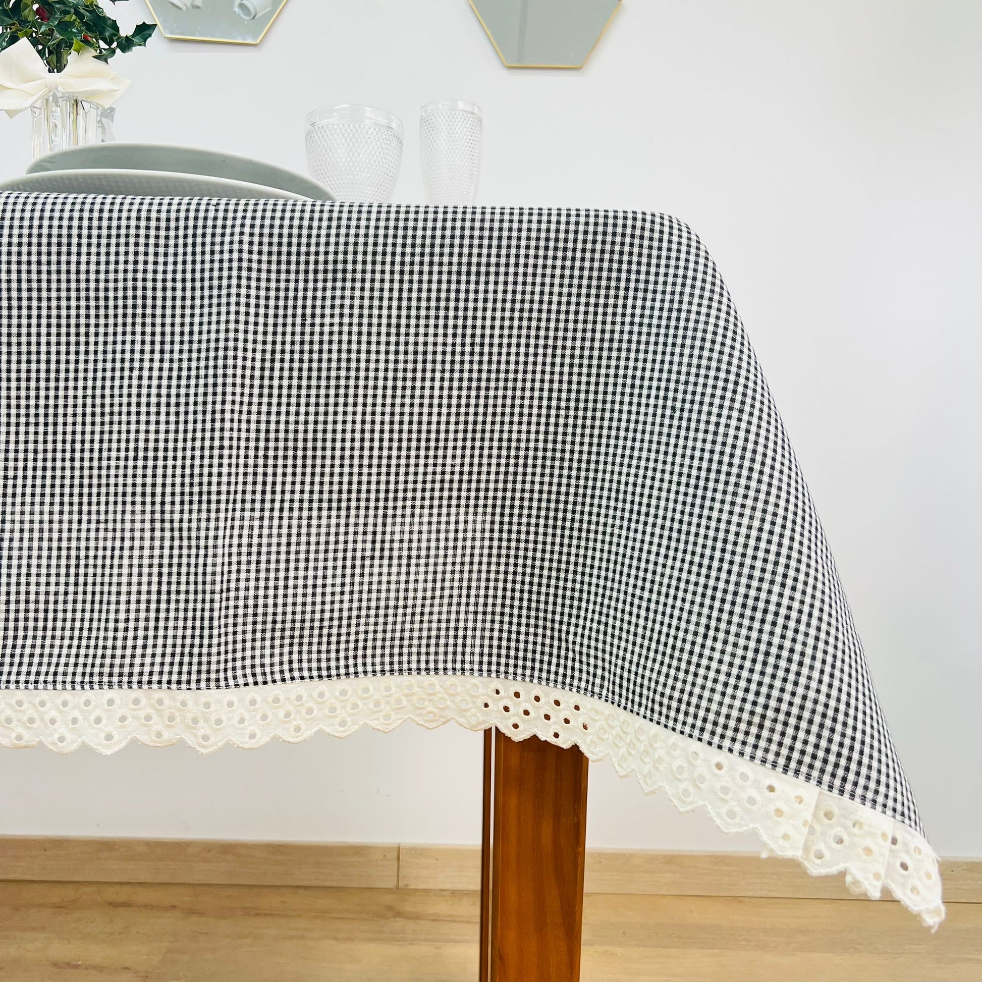 Toalha de mesa Vichy preto Renda